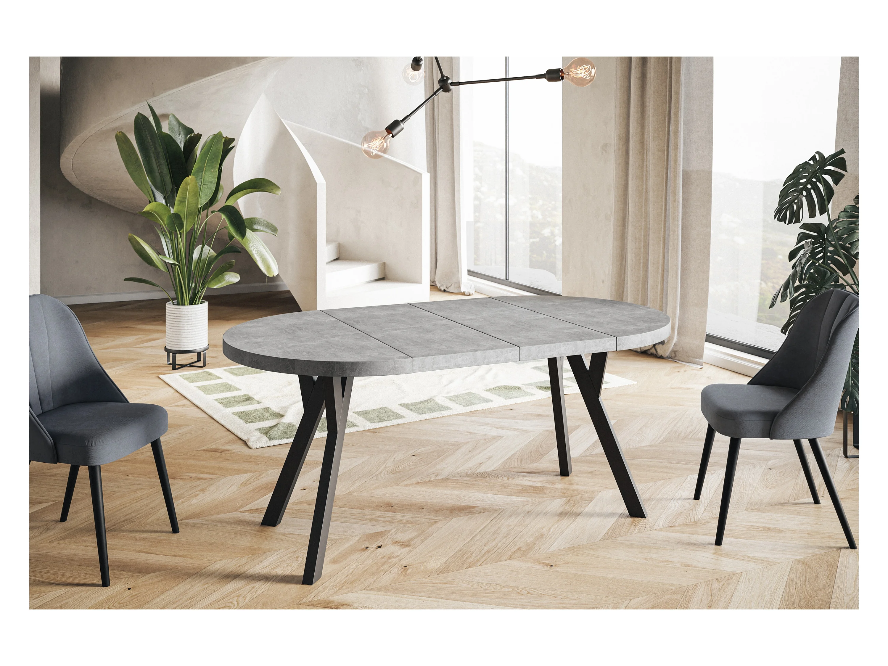 Table de salle à manger ronde OVO, table à rallonges Diamètre : 110 cm à 210 cm, couleur de la table basse : graphite, avec pieds en bois de couleur noire