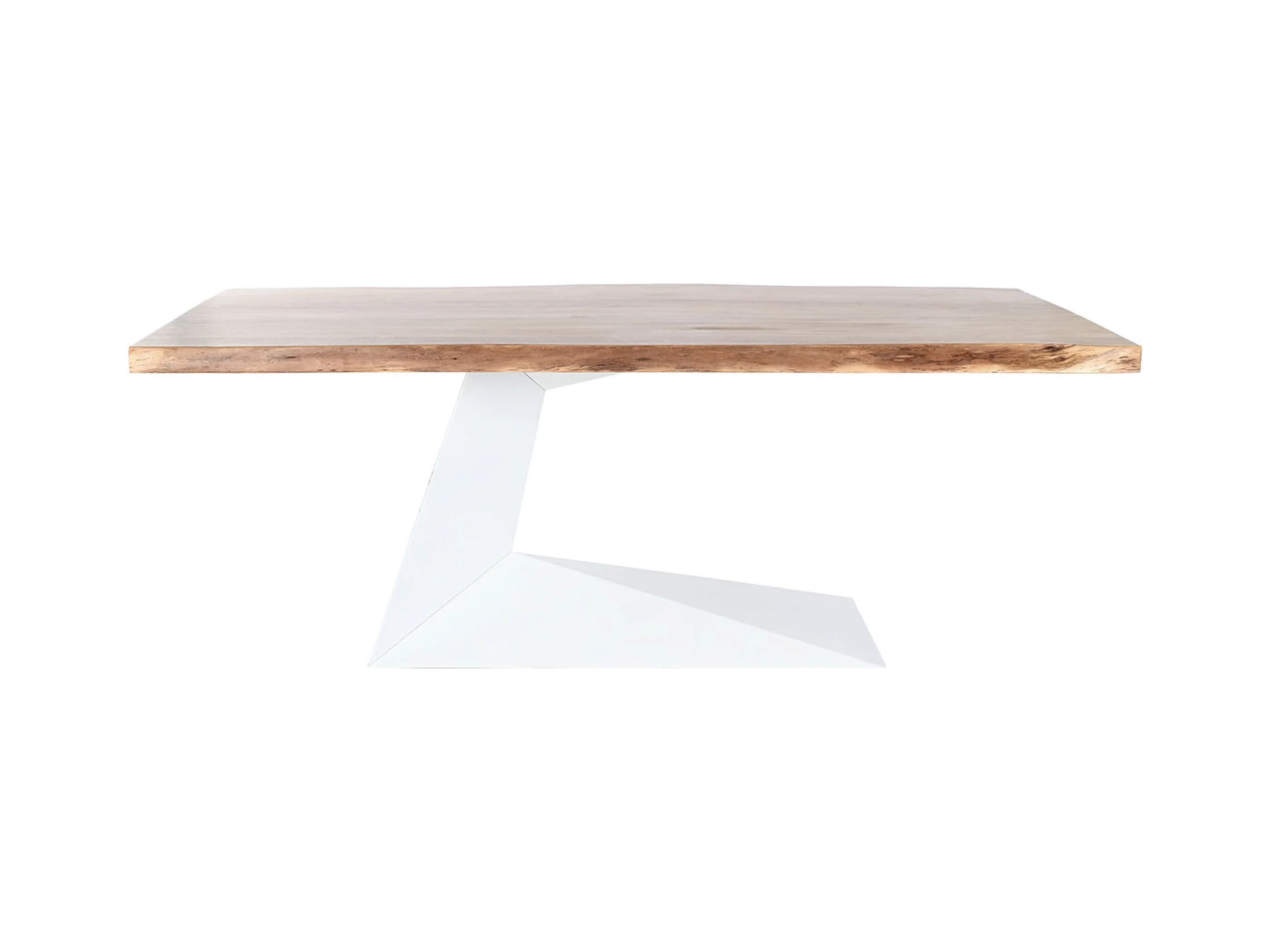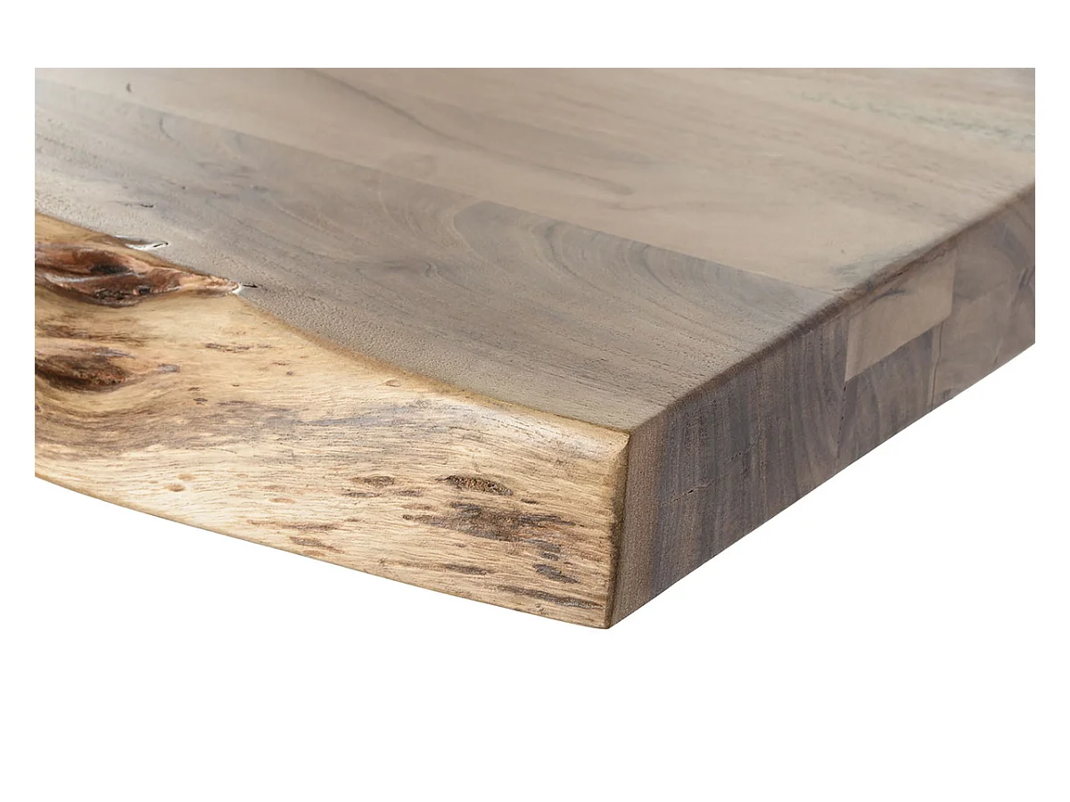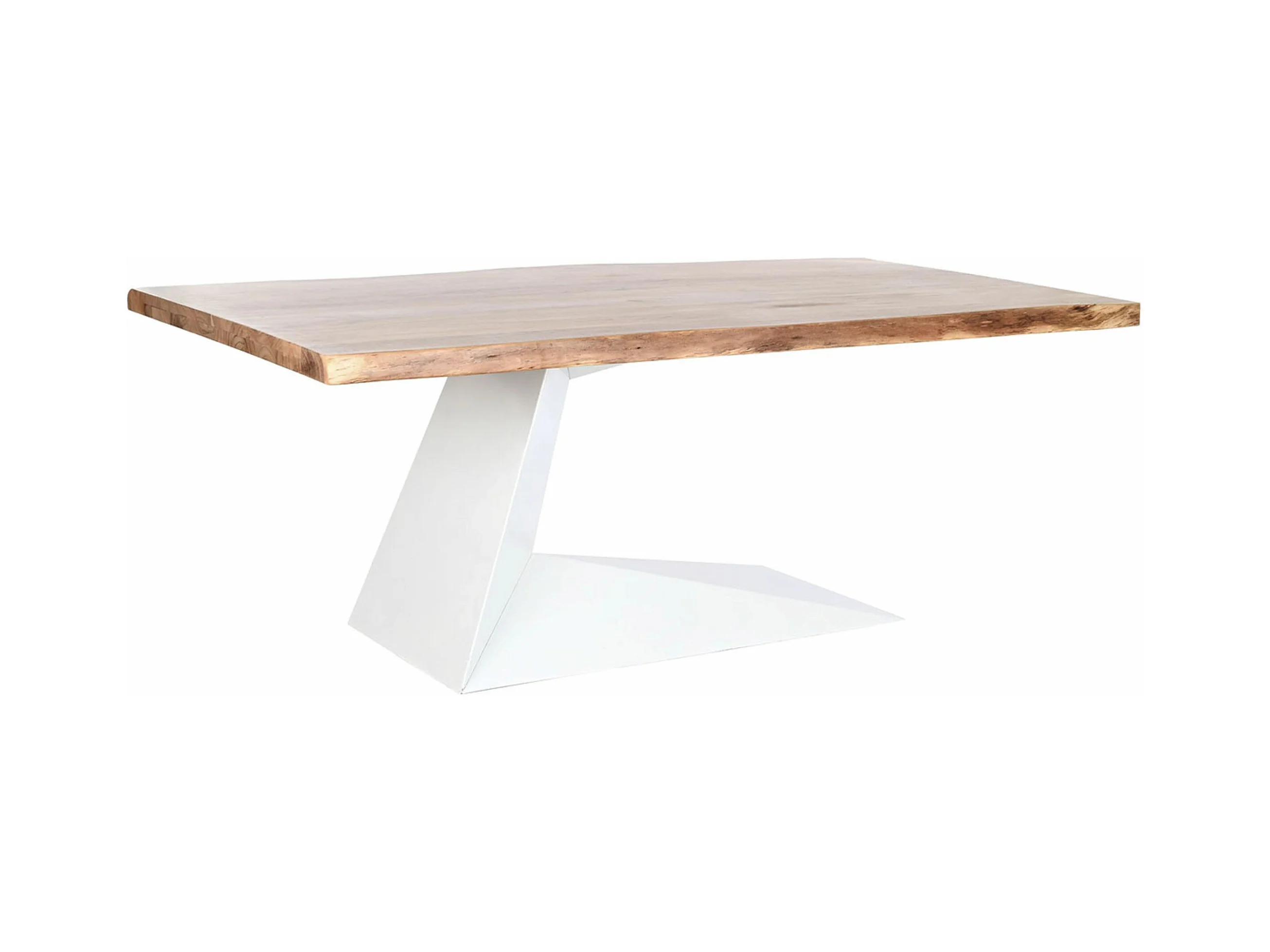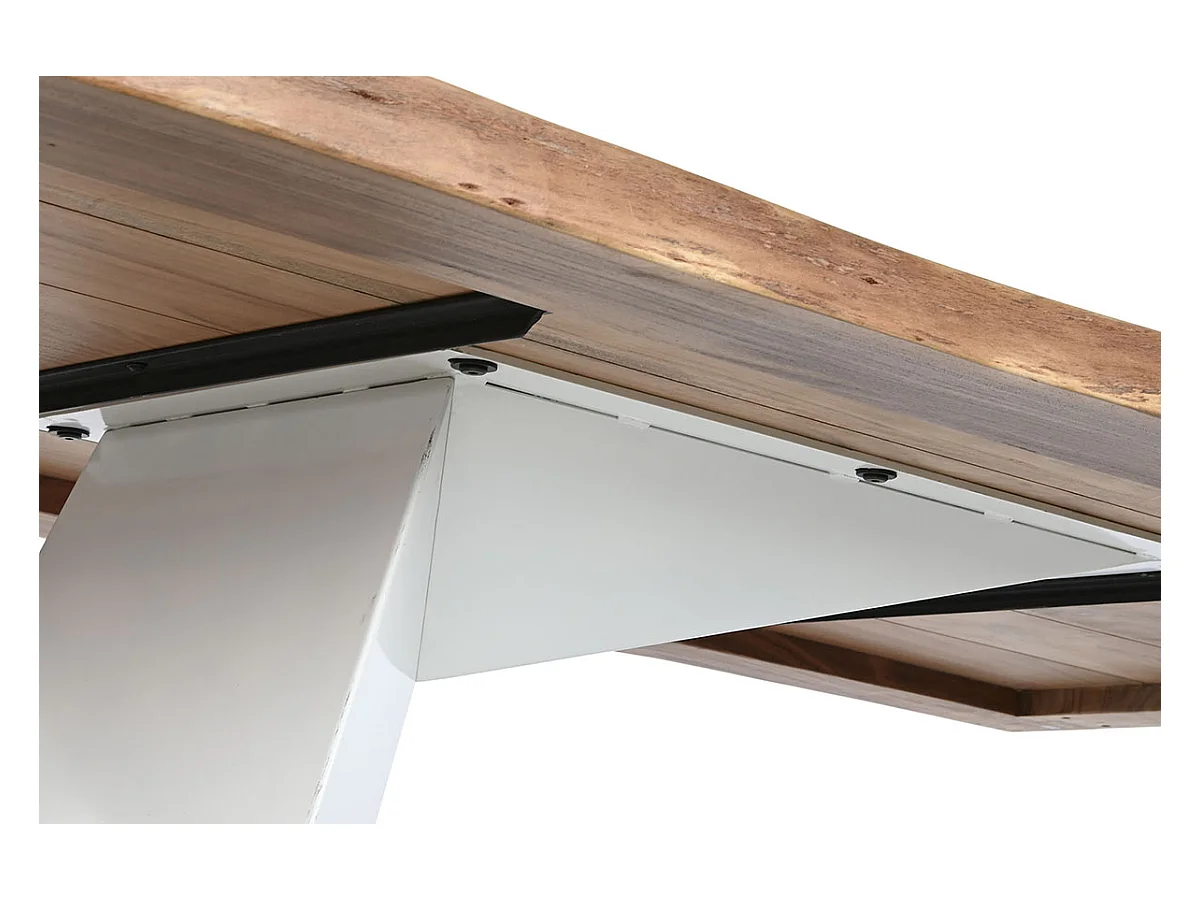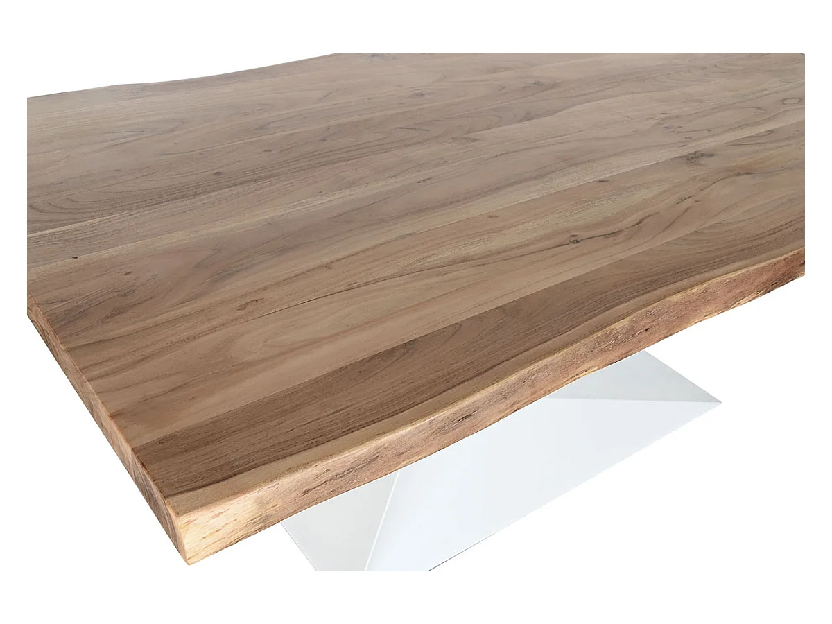 Table de salle à manger, table de repas en bois d'acacia coloris naturel et métal blanc - longueur 200 x profondeur 100 x hauteur 76 cm