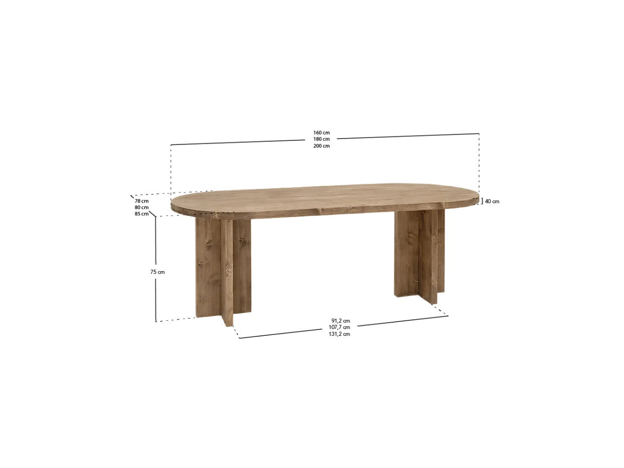 Table à manger ovale en bois de sapin marron 160x75cm - TOKYO - DECOWOOD