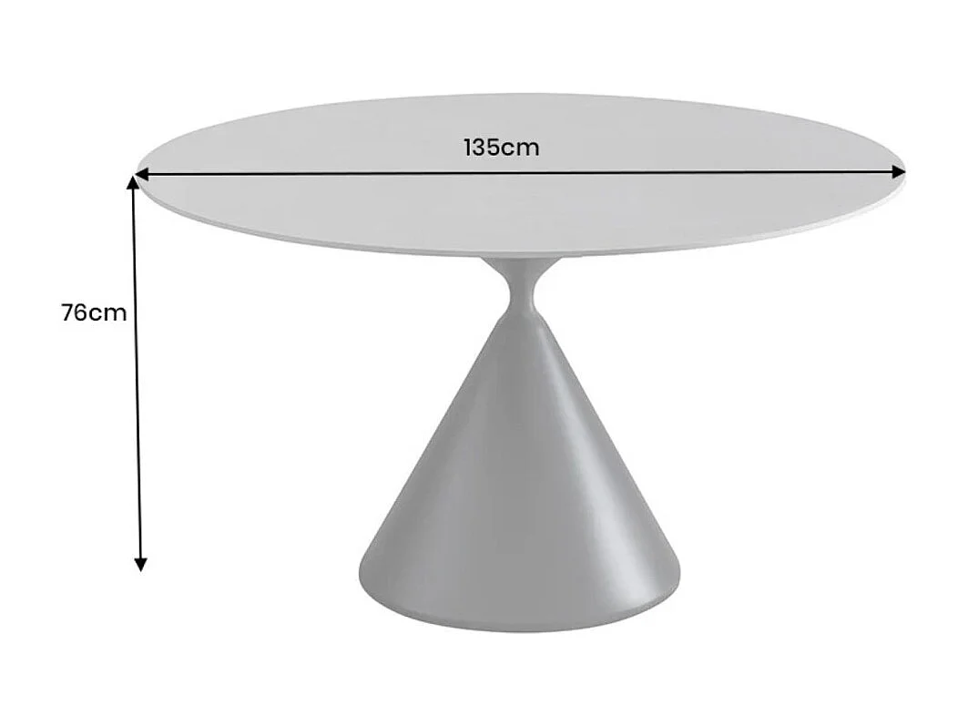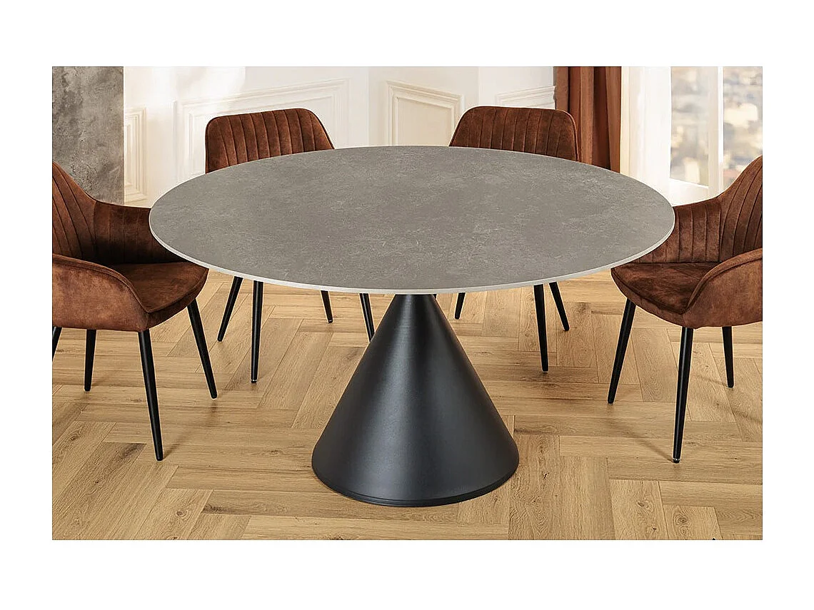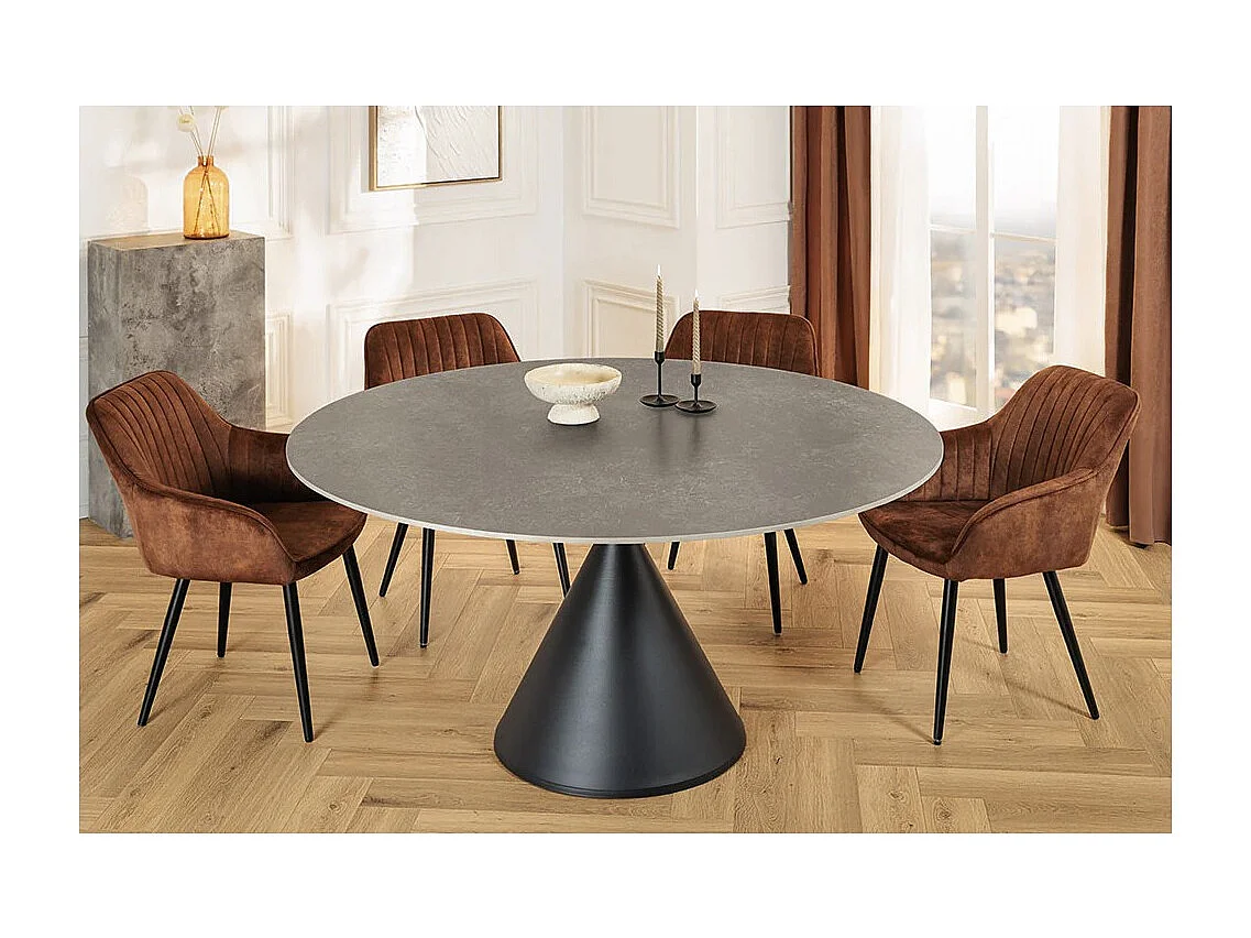 Table de salle à manger VOLTIS – Ronde diamètre 135 cm – Plateau céramique effet marbre gris – Pieds métal – Style chic