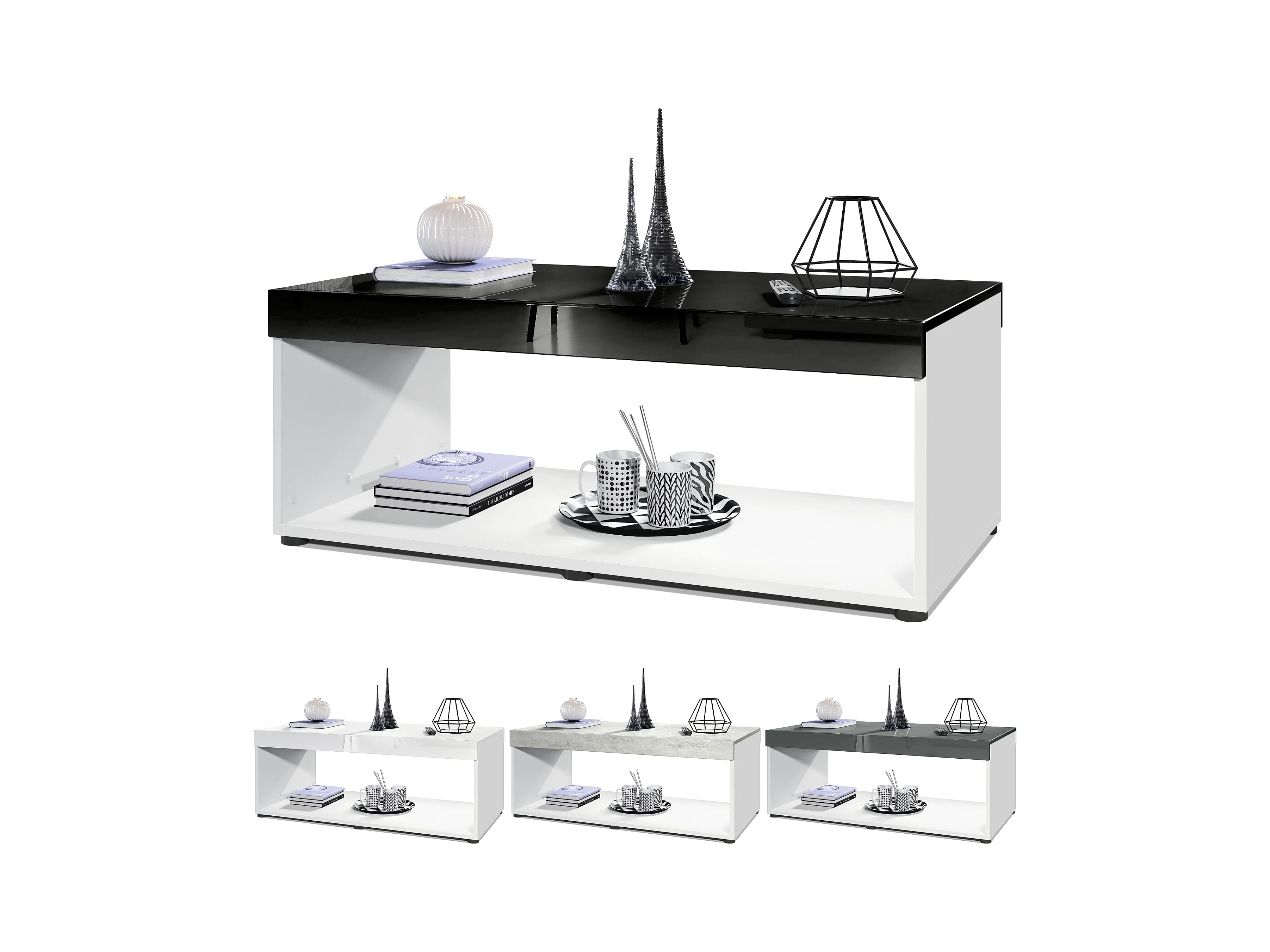 Table de salon Pure, Table basse rectangulaire, Blanc mat/Chêne Nature (104 x 40,5 x 58 cm)