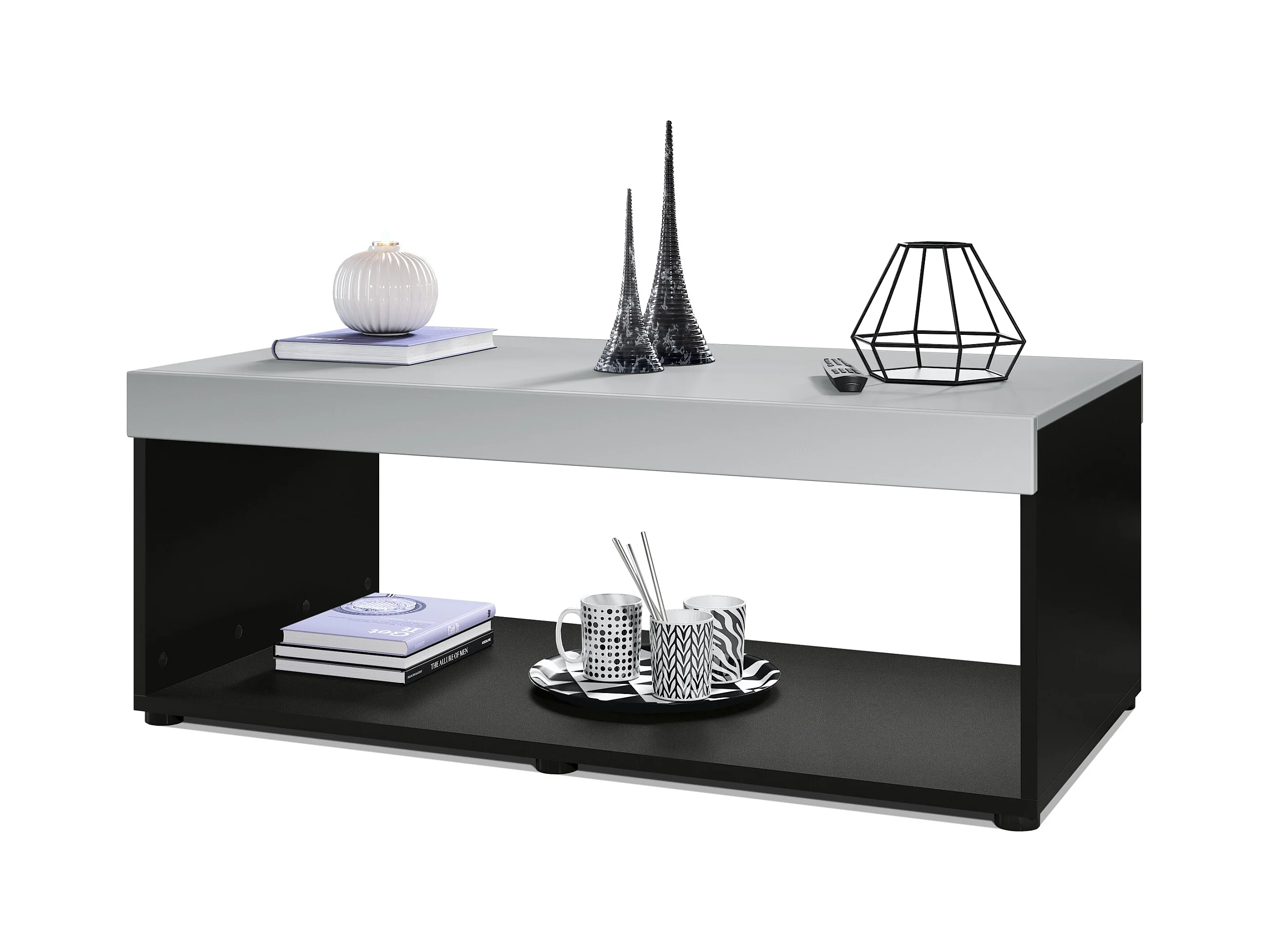 Table de salon Pure, Table basse rectangulaire, Noir mat/Gris clair satiné mat (104 x 40,5 x 58 cm)