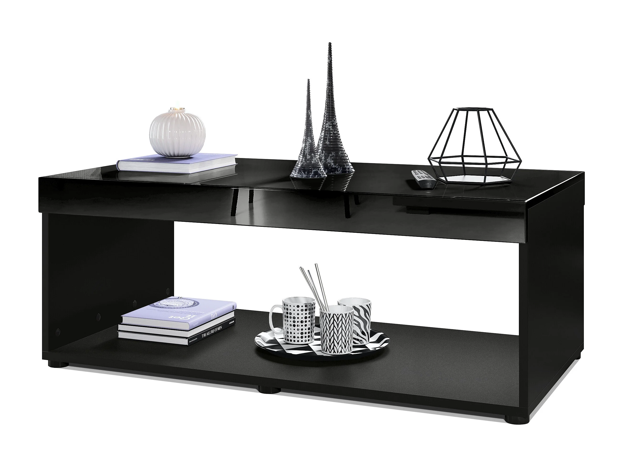 Table de salon Pure, Table basse rectangulaire, Noir mat/Noir haute brillance (104 x 40,5 x 58 cm)