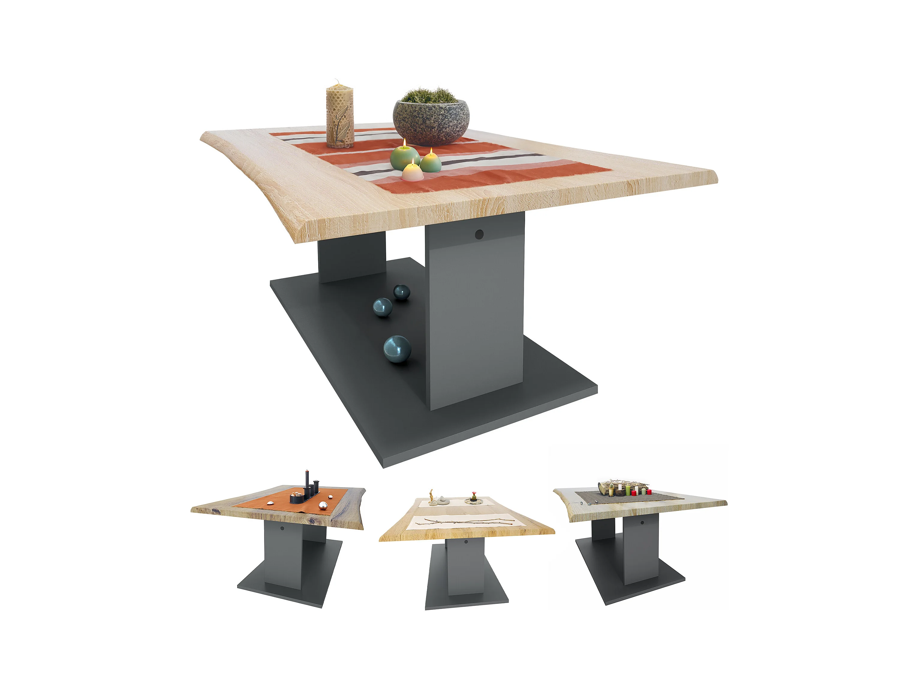 Table de Salon Table basse Melo en Anthracite avec plateau de dessus en chêne nature 102 x 40 x 67,5 cm