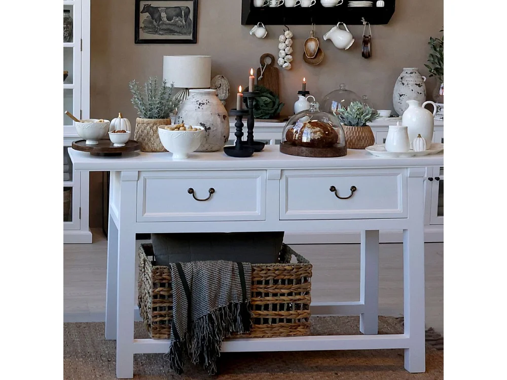 Table de service desserte en bois de pin recyclé blanc 150 x 40 x 85cm