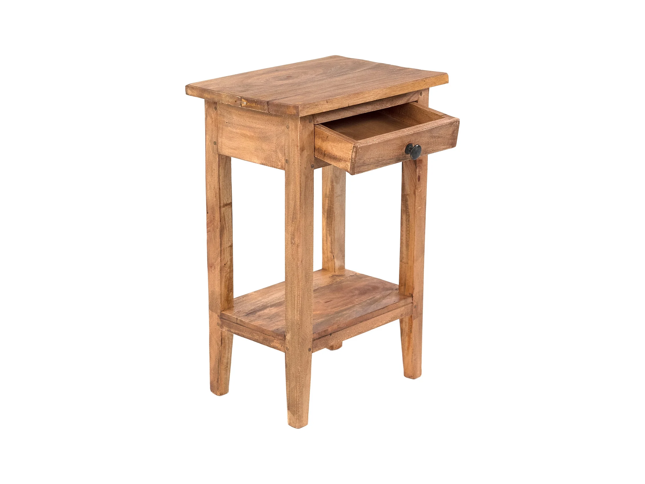 TABLE DE NUIT Ben Bois massif en acajou, avec tiroir et 2 compartiments brun rustique