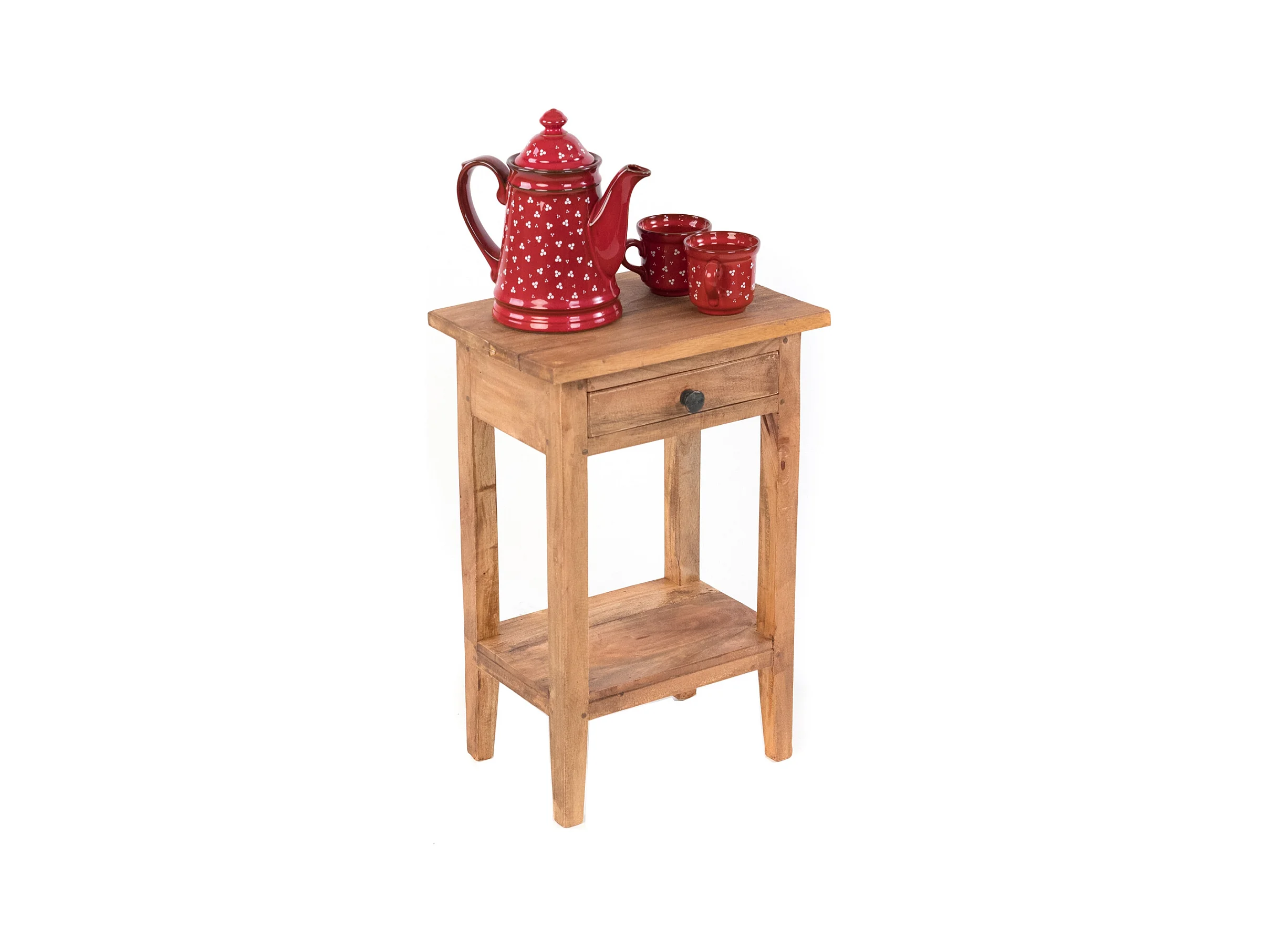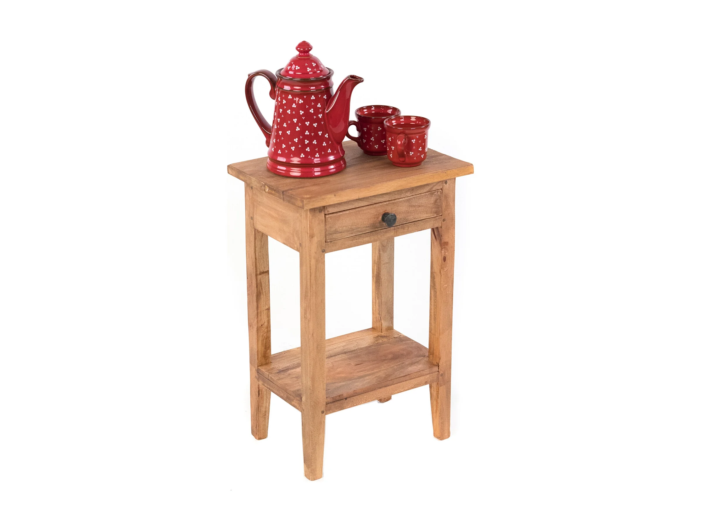 TABLE DE TÉLÉPHONE Rika 70 cm, teck massif, avec deux tiroirs marron