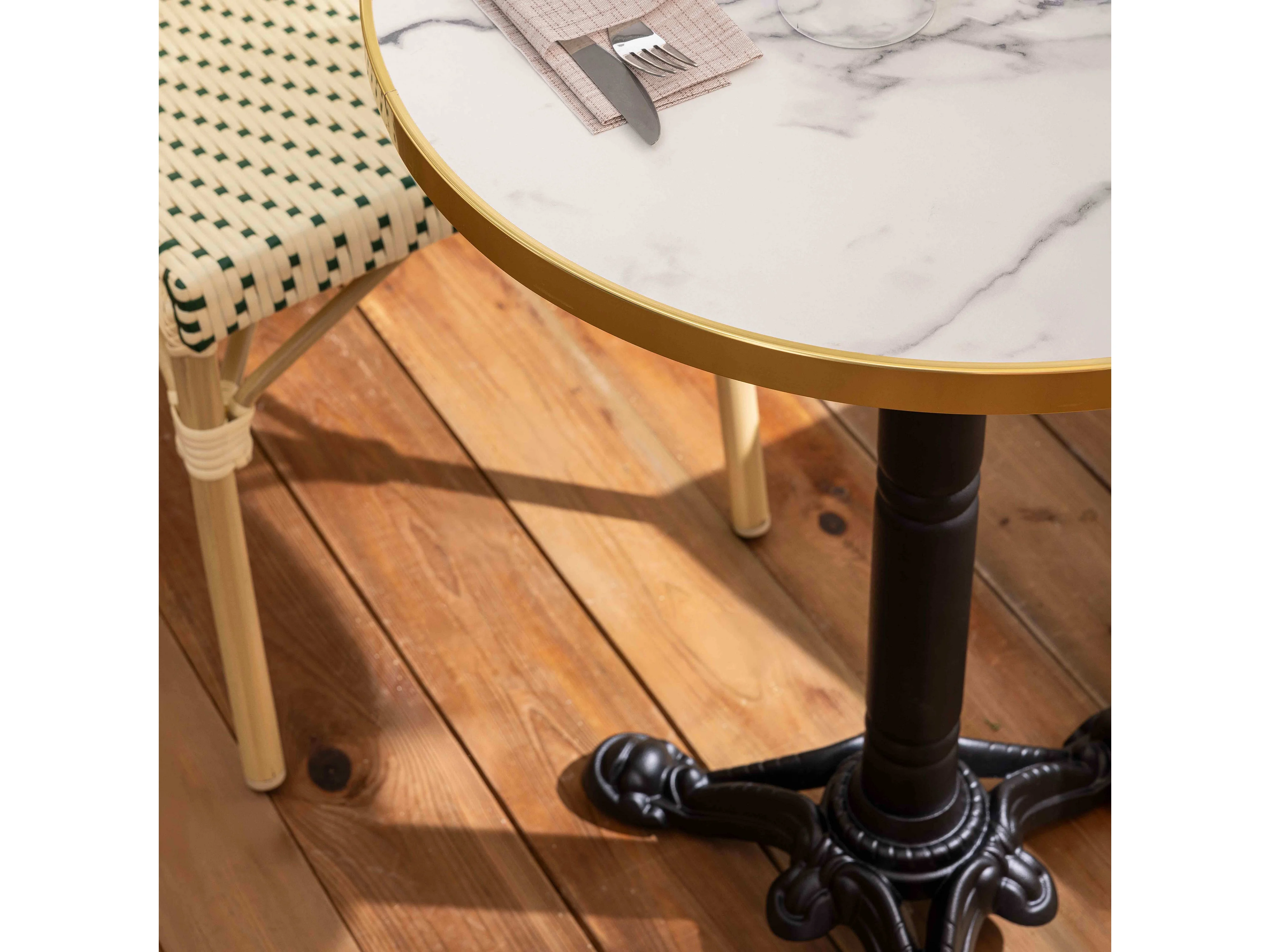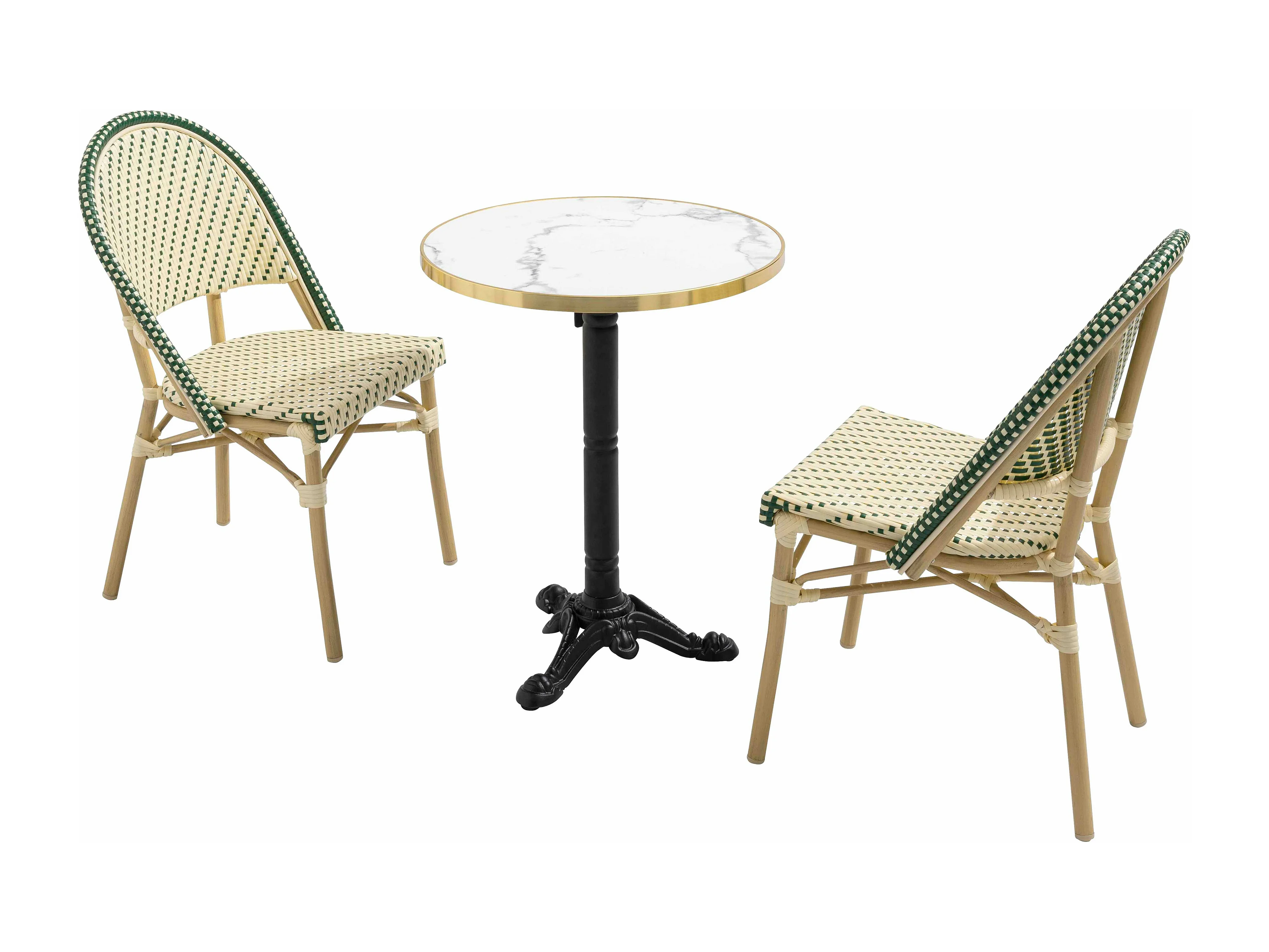 Table de terrasse 60cm inclinable marbre blanc et 2 chaises vert