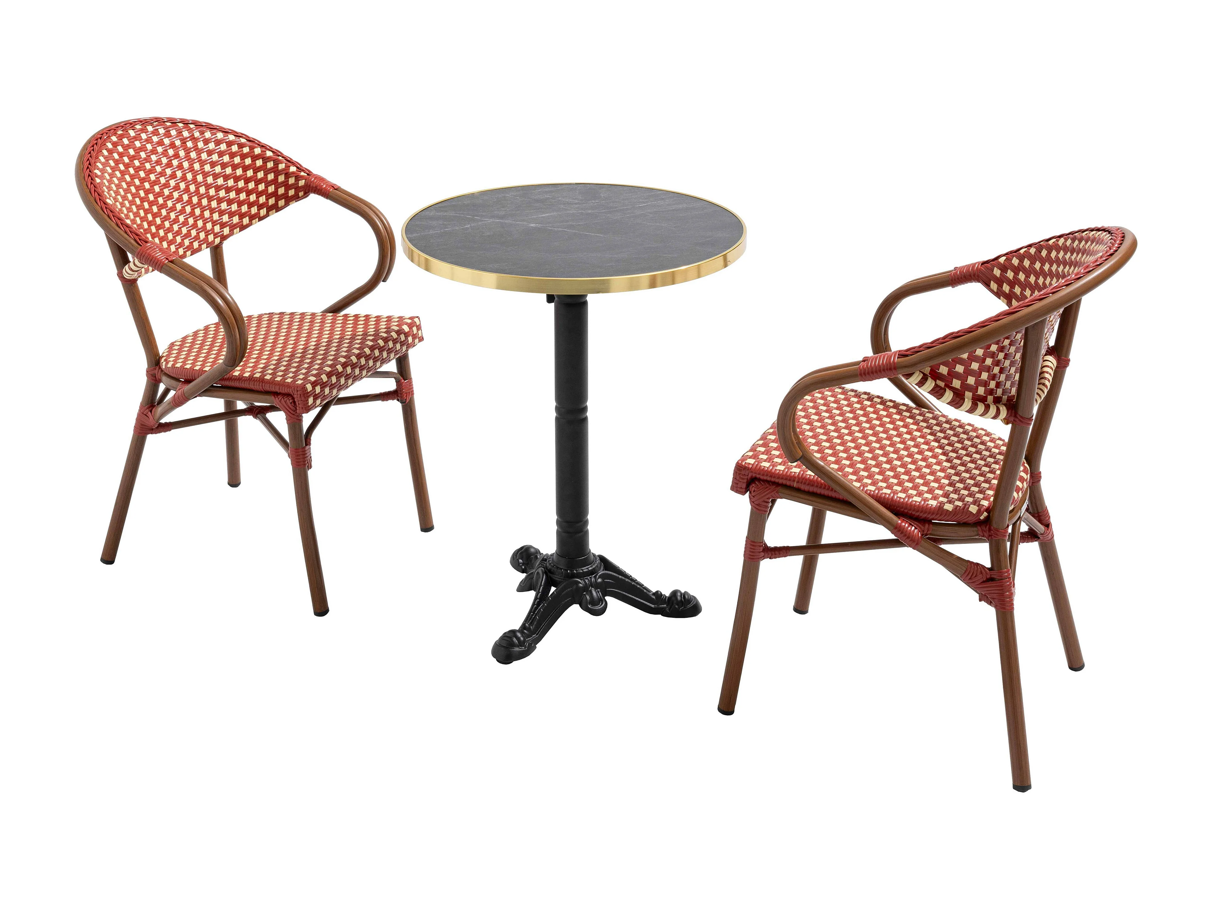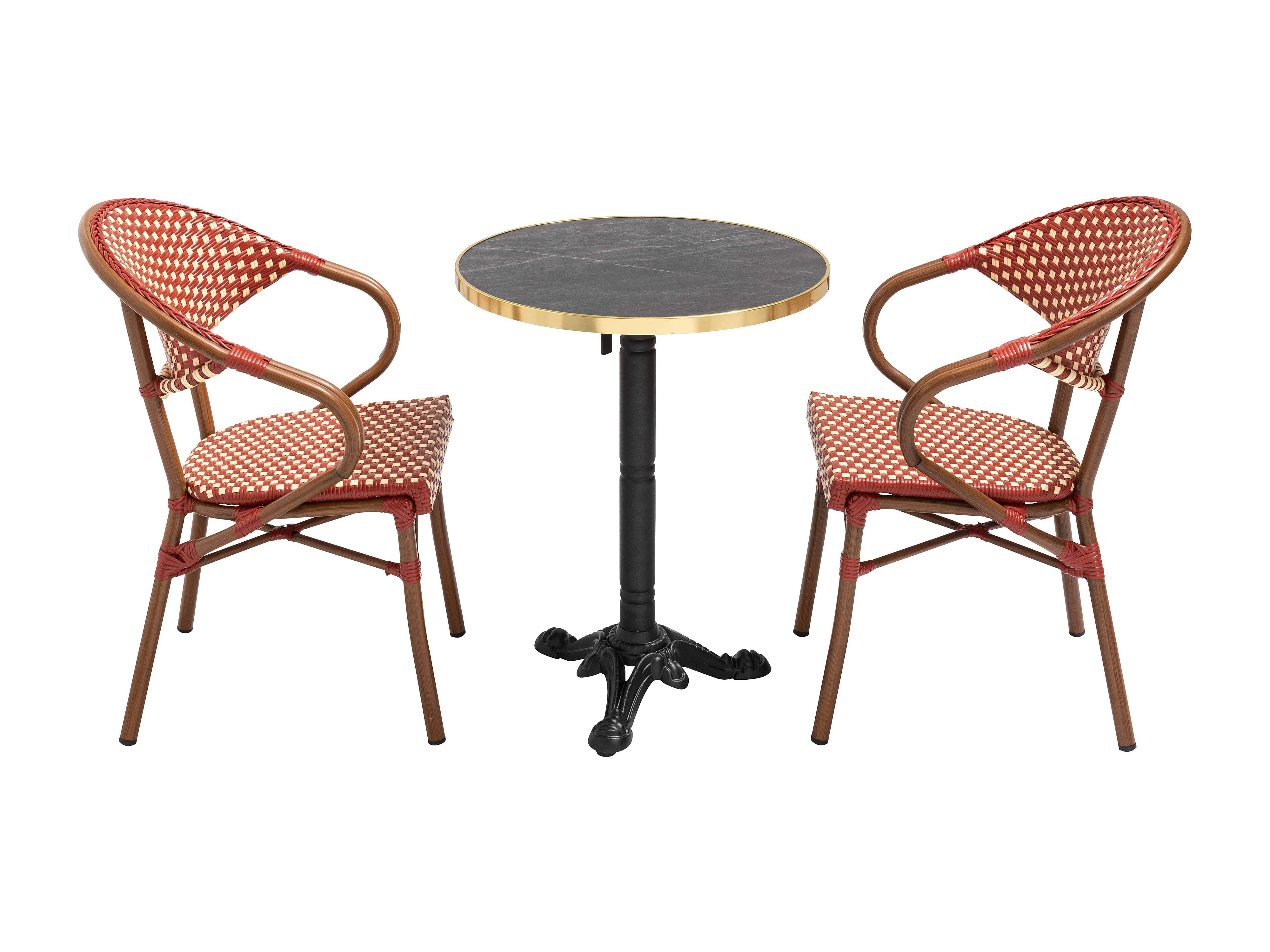Table de terrasse 60cm inclinable marbre noir et 2 chaises rouge