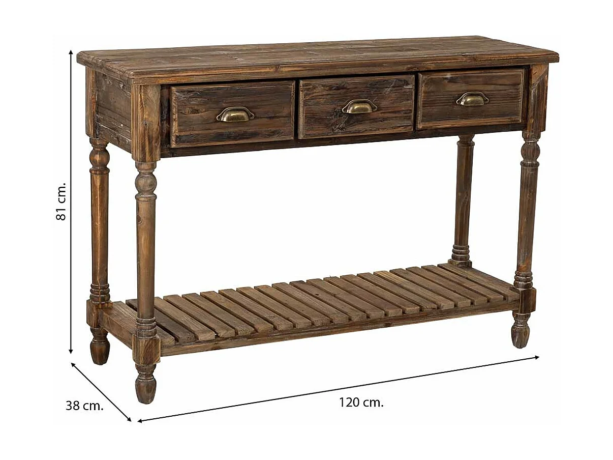 Table d'entrée en bois avec 3 tiroirs 120x38x81h cm