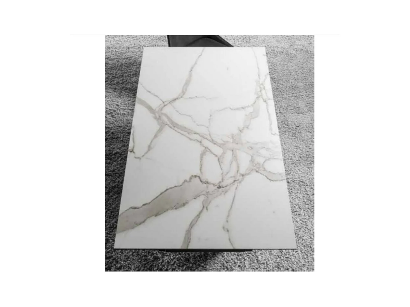 Table design 180cm céramique marbre blanc et pieds métal noir Kylane