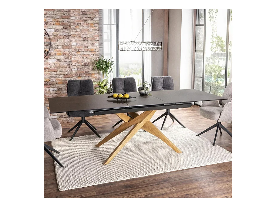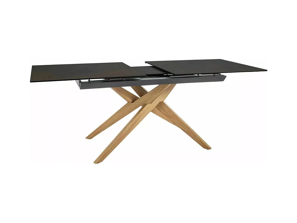 Table design céramique bronze - 180/230 cm - pieds bois - Viani