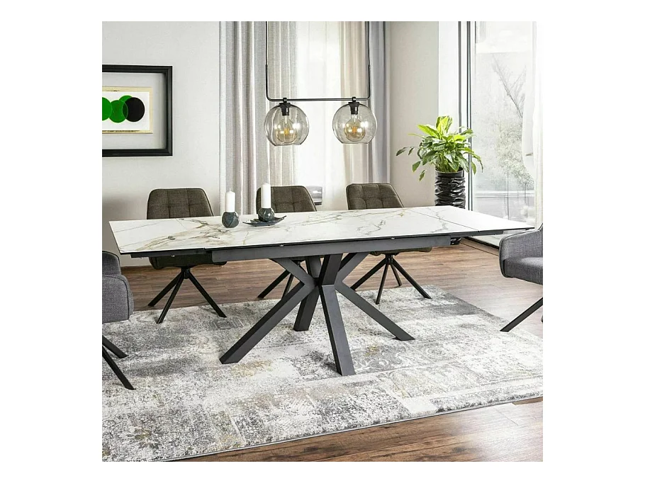 Table design céramique effet marbre blanc 160-240 cm Gatien