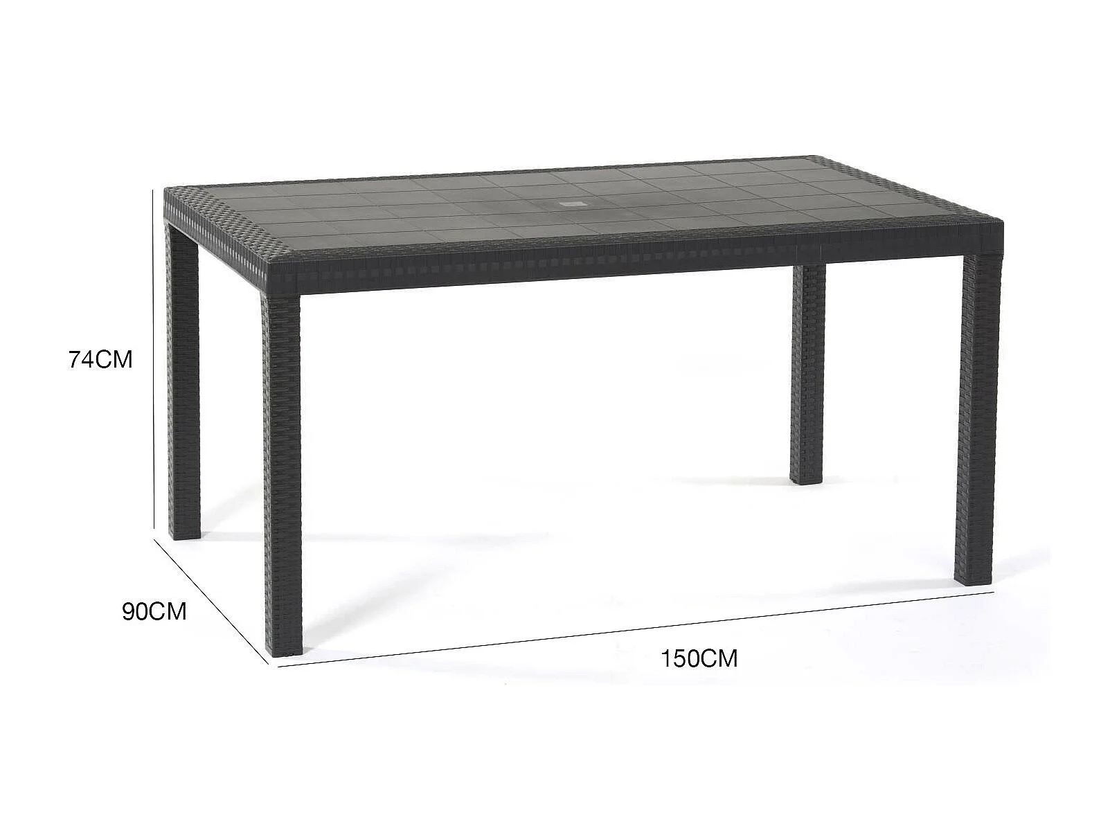 Table d'extérieur Giove, Etagère de jardin rectangulaire, Table de jardin polyvalente effet rotin, 100% Made in Italy, 150x90h74 cm, Anthracite