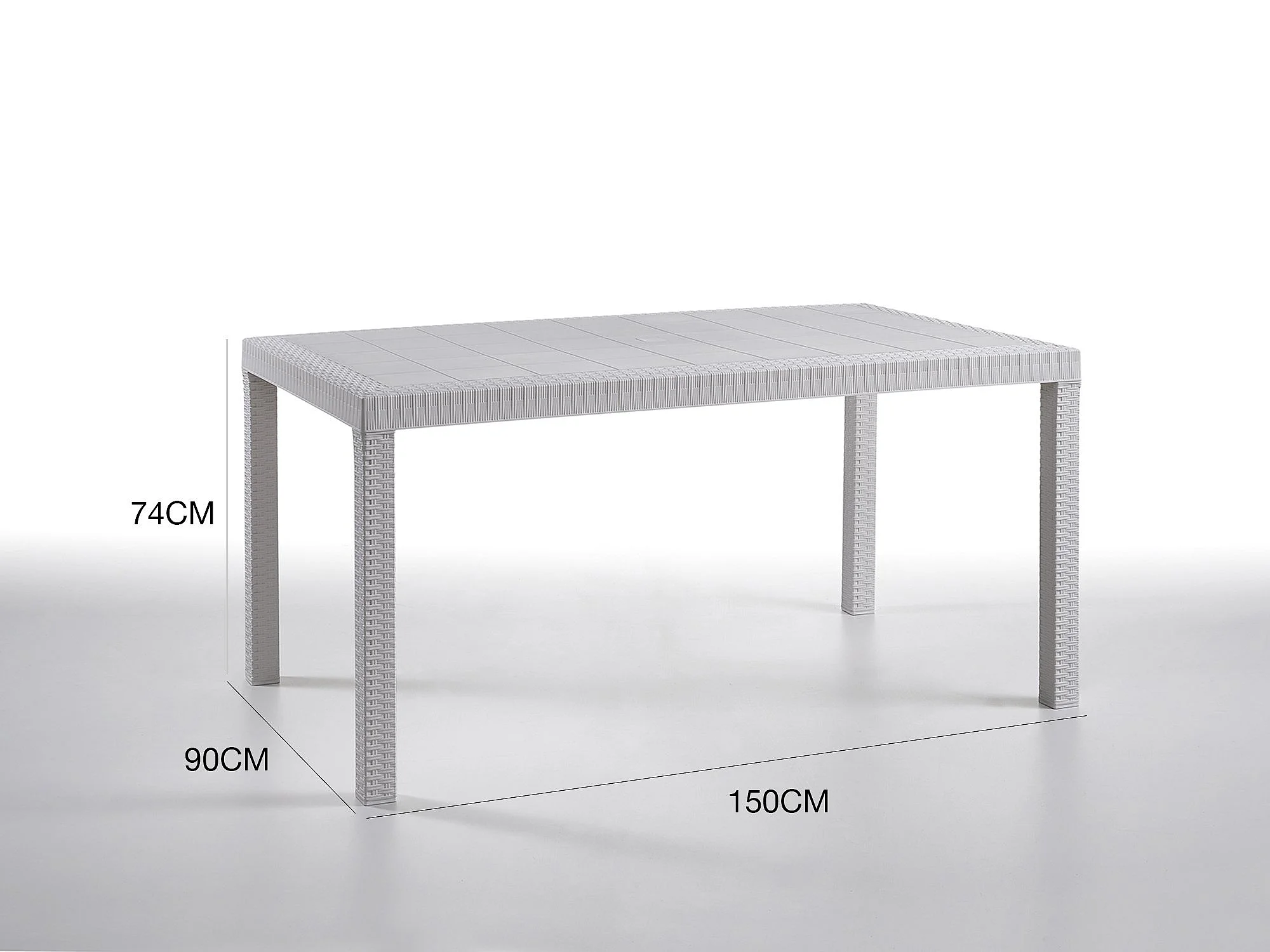 Table d'extérieur Giove, Table de jardin rectangulaire, Table de jardin polyvalente effet rotin, 100% Made in Italy, 150x90h74 cm, Blanc