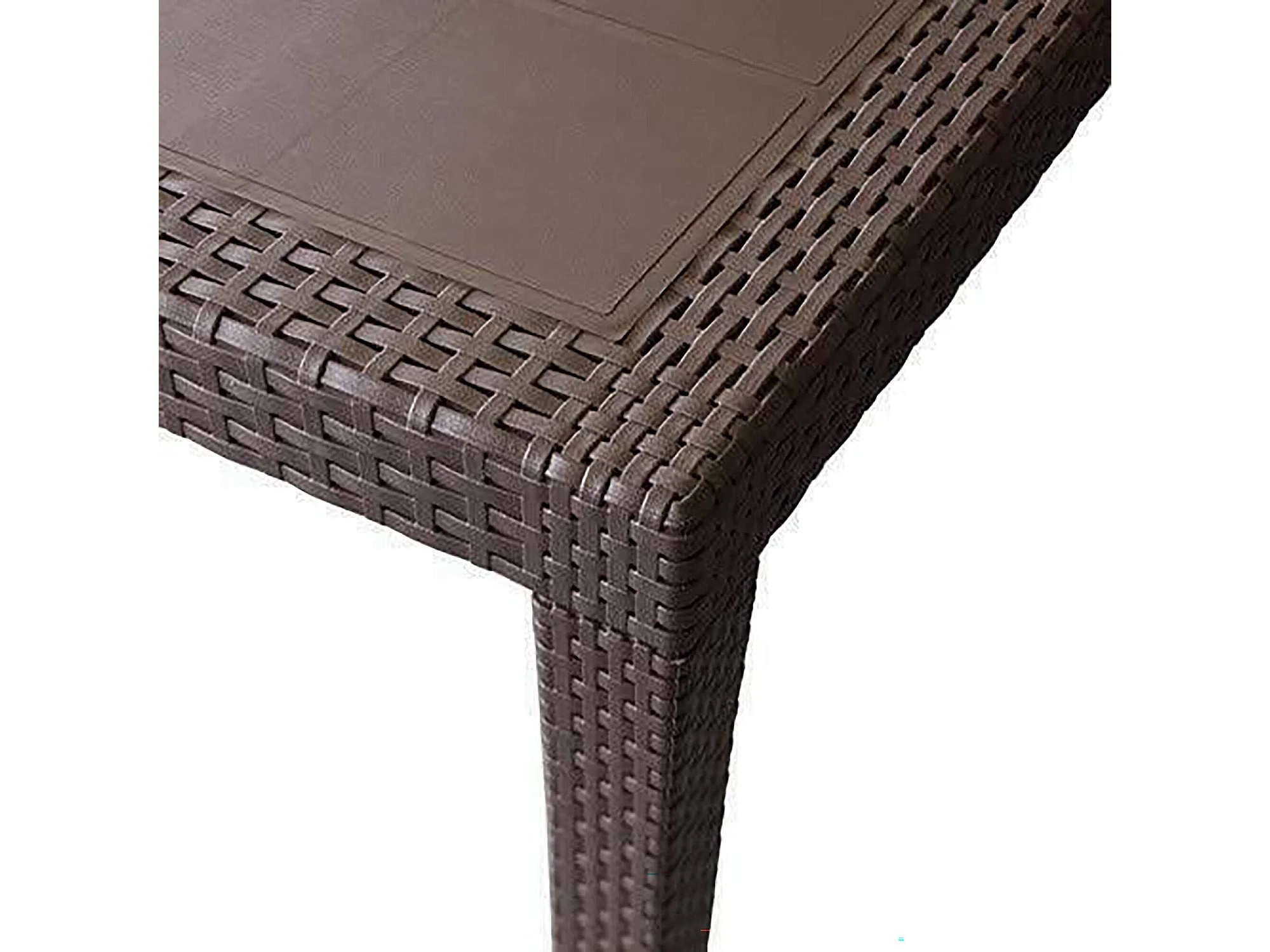 Table d'extérieur Roma, Etagère à manger rectangulaire extensible, Table de jardin extensible effet rotin, 100% Made in Italy, 150/220x90h72 cm, Marron