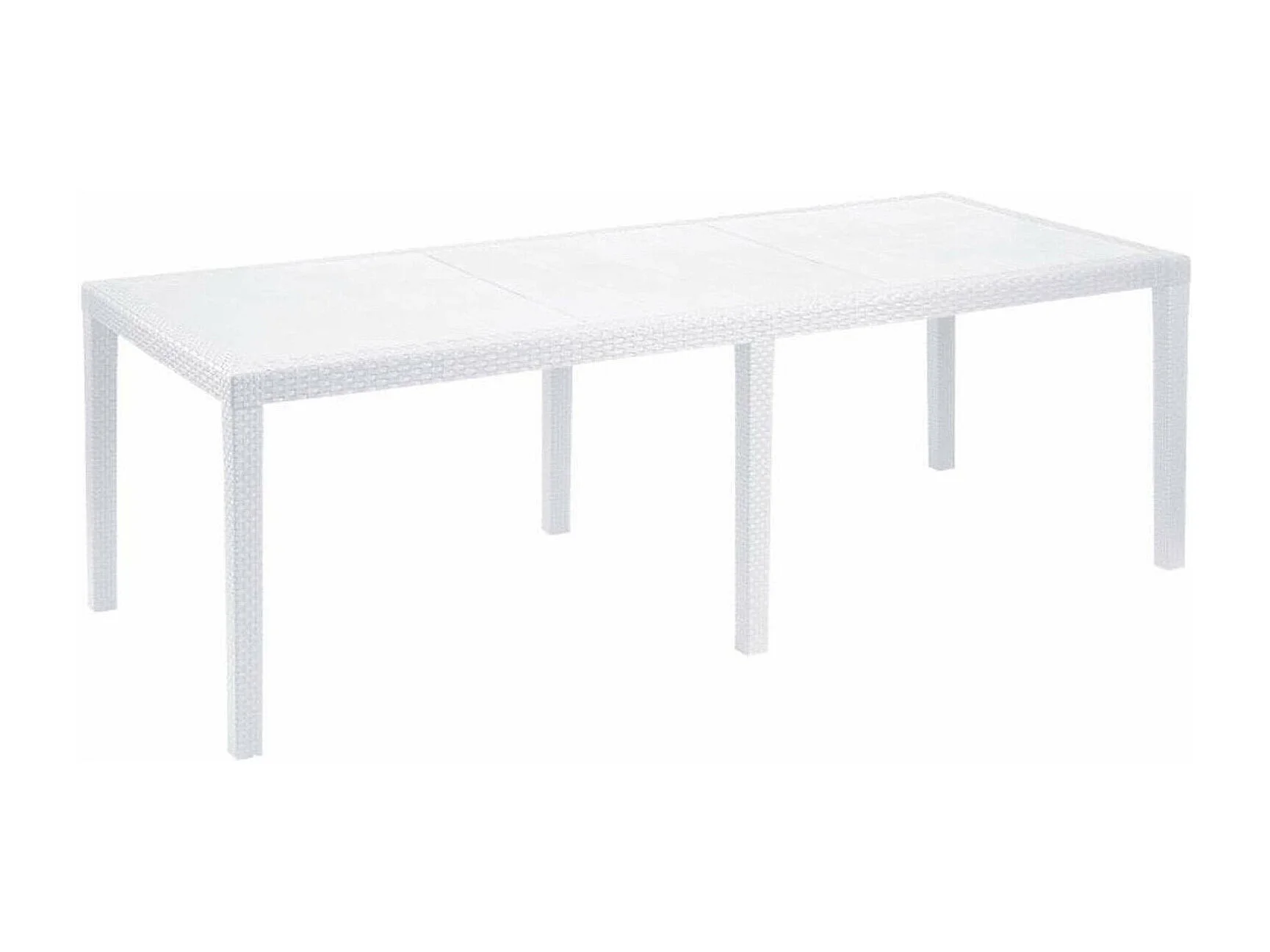 Table d'extérieur Roma, Etagère à manger rectangulaire extensible, Table de jardin extensible effet rotin, 100% Made in Italy, 150/220x90h72 cm, Blanc