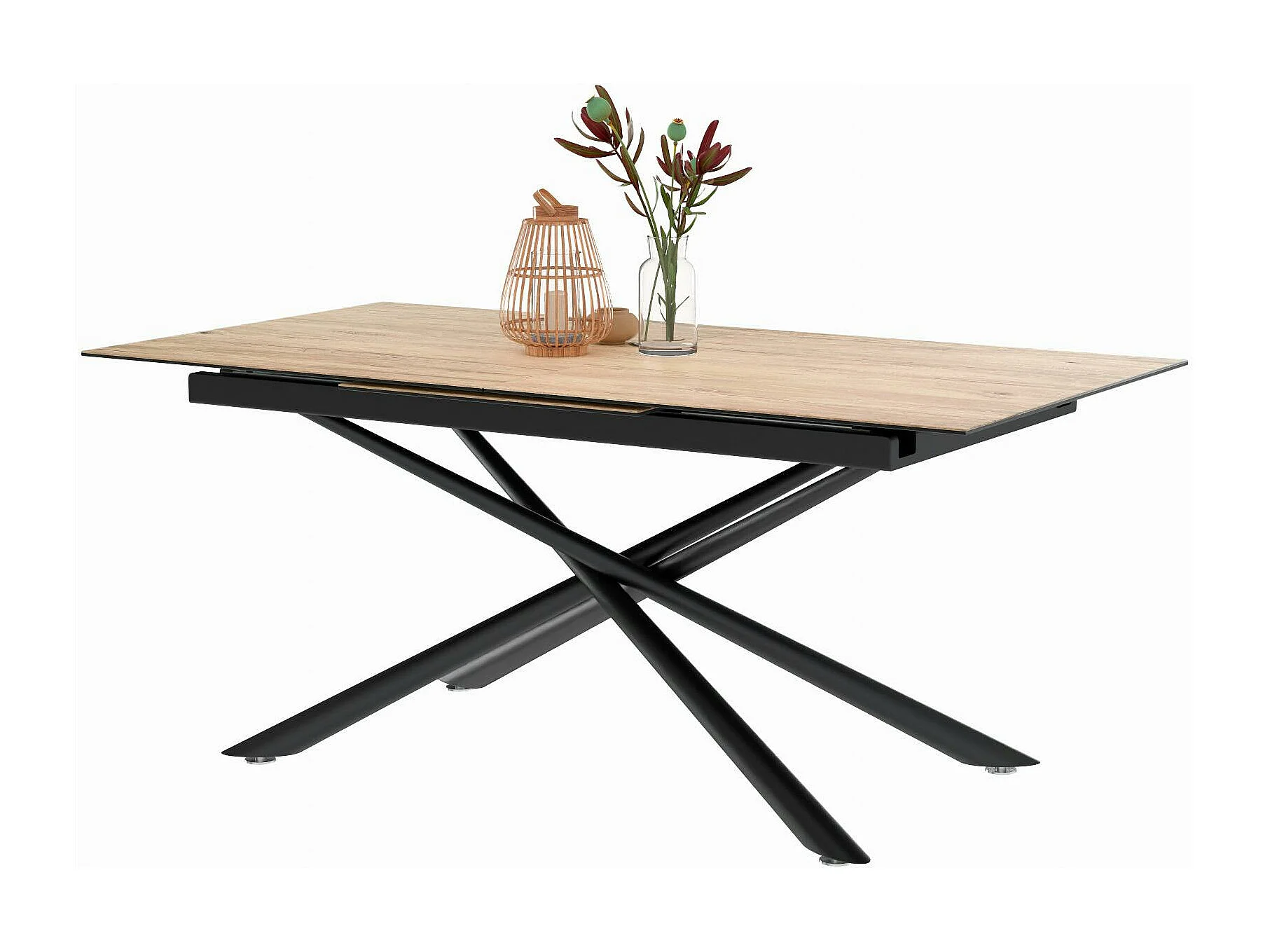 Table en céramique extensible aspect bois pied mikado 180-240 cm LOMBARDIE