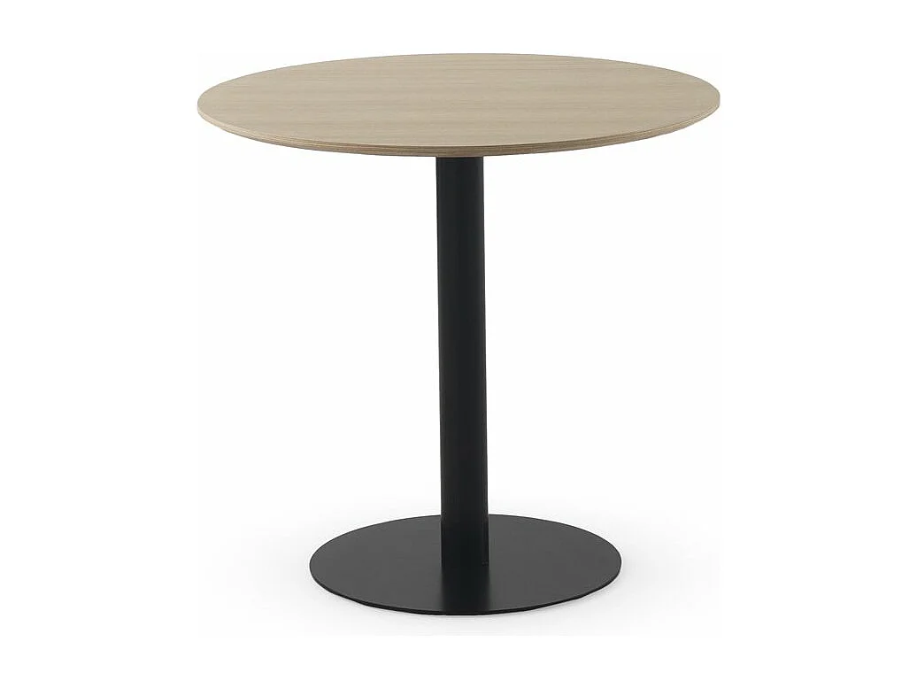Table en mélamine frêne 80 de diamètre, pied en métal noir
