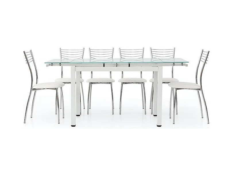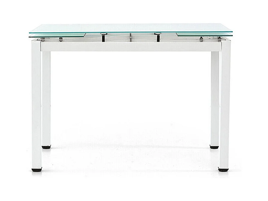 Table en métal blanc et plateau extensible en verre blanc 110x70cm - RAPALLO