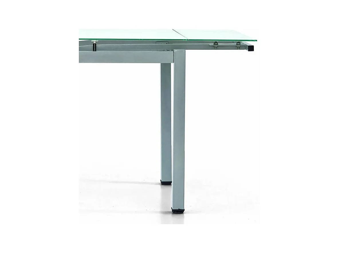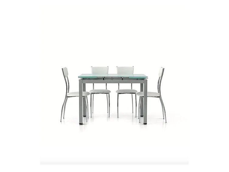 Table en métal gris et plateau extensible en verre blanc 110x70cm - RAPALLO