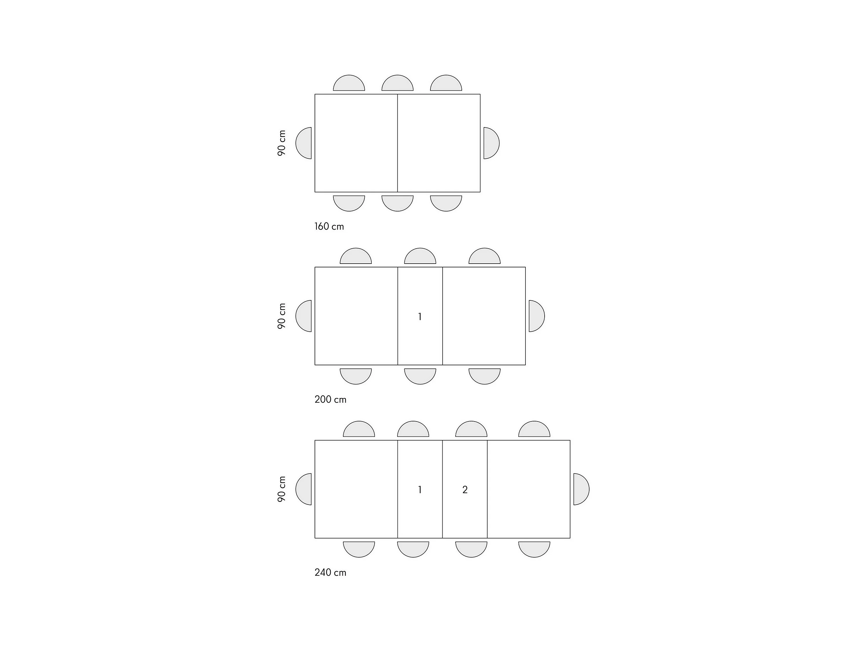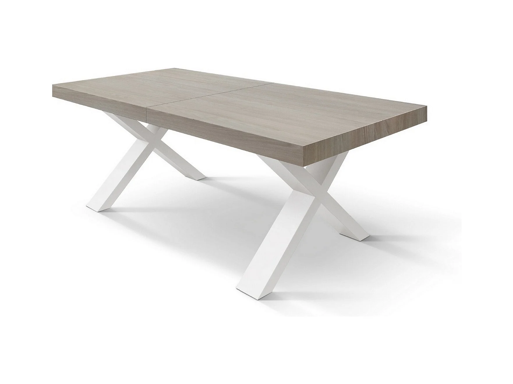 Table en orme nacré, pieds X blancs, 160x90-240x90cm - AMALFI