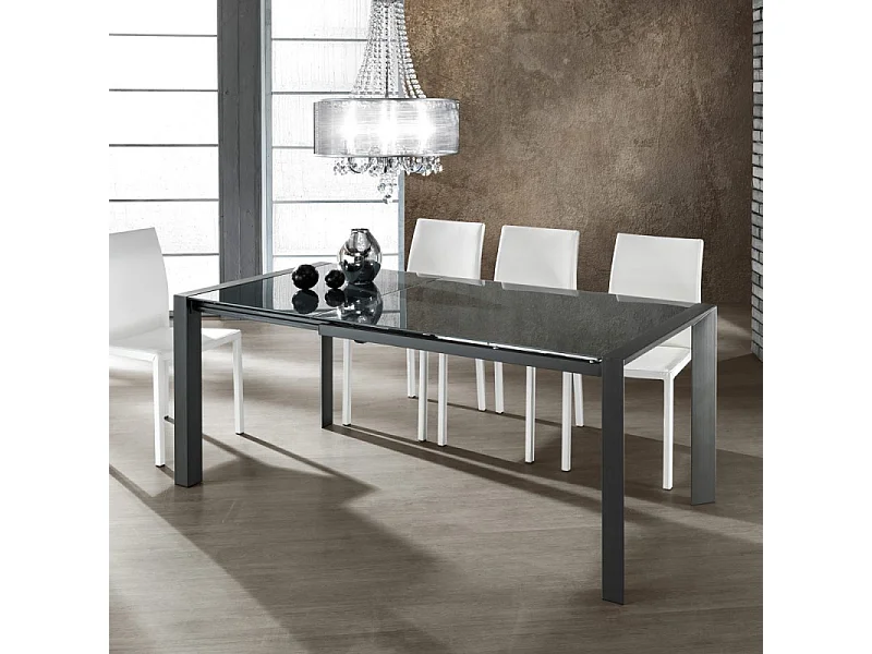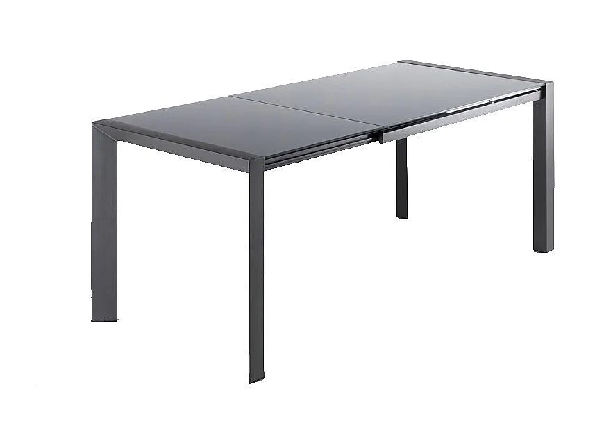 Table extensible 120 à 180 cm plateau verre gris pieds acier - MYSTIC