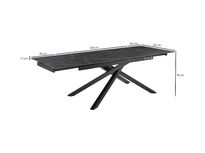 Table extensible 160/240 cm céramique noir marbré pied torsadé - INDIANA 05