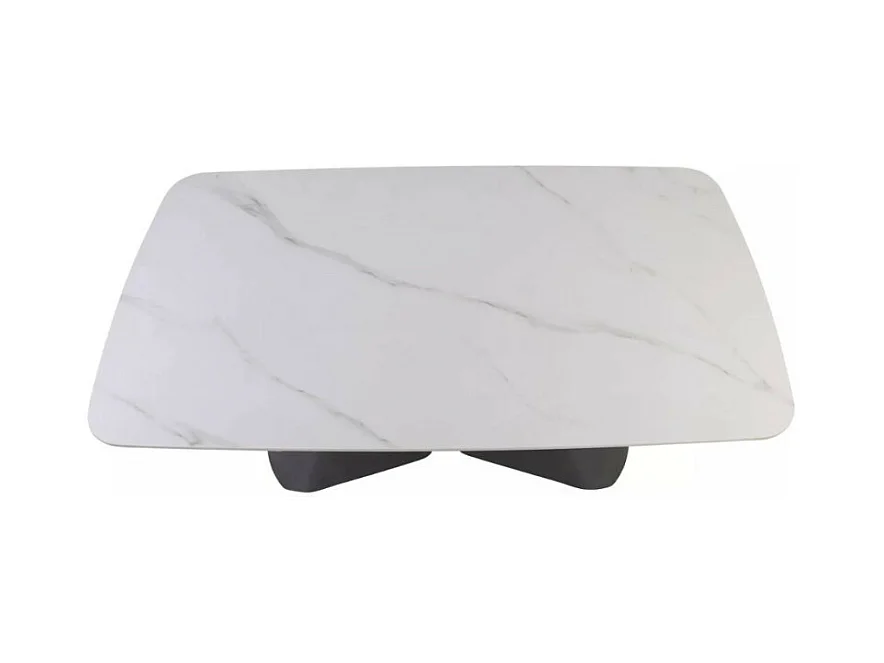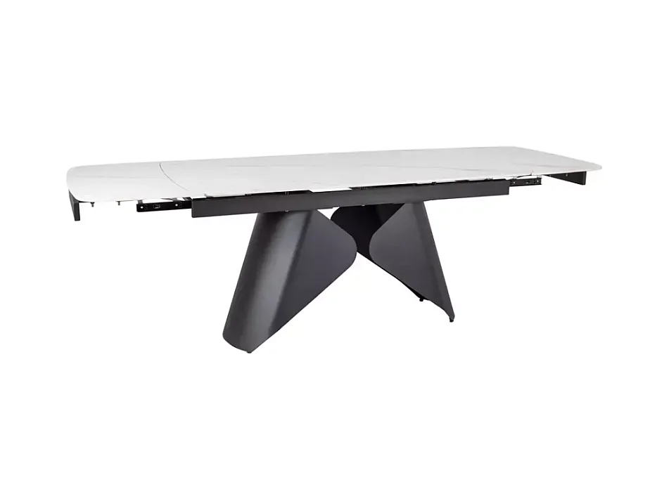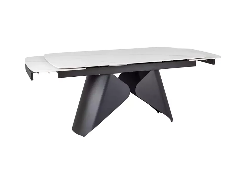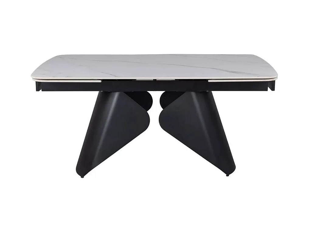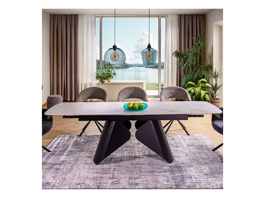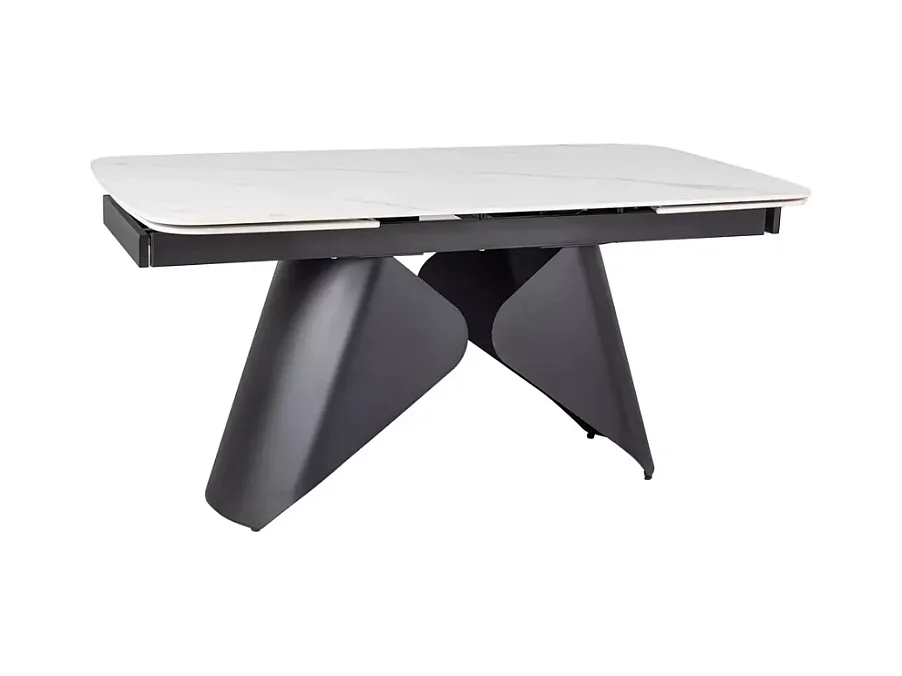 Table extensible 160 + 80cm, plateau céramique effet marbre blanc mat Urbain