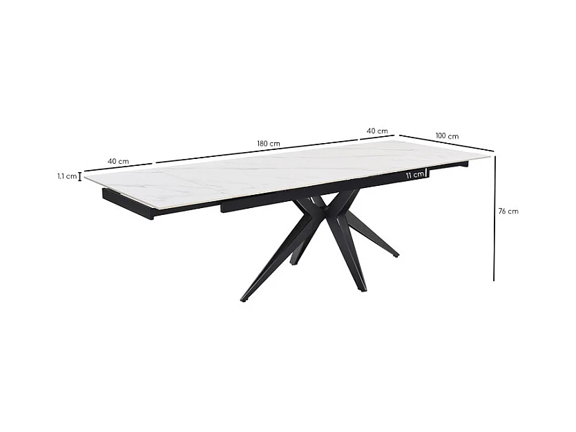 Table extensible 180/260 cm céramique blanc marbré pied étoile - NEVADA 06