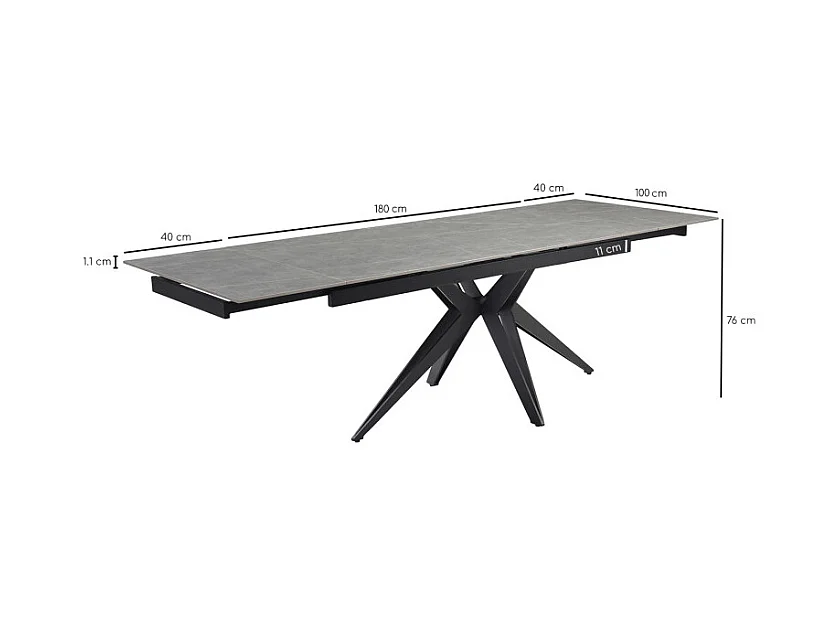 Table extensible 180/260 cm céramique gris marbré pied étoile - ARIZONA 06