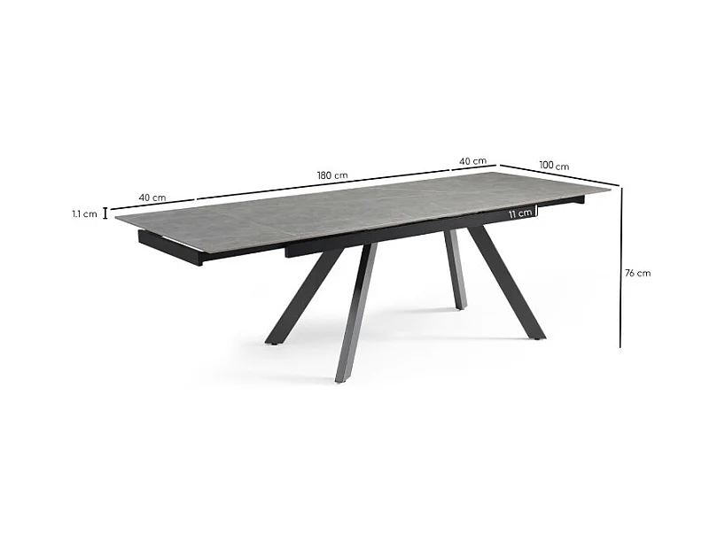 Table extensible 180/260 cm céramique gris marbré pieds inclinés - ARIZONA 08