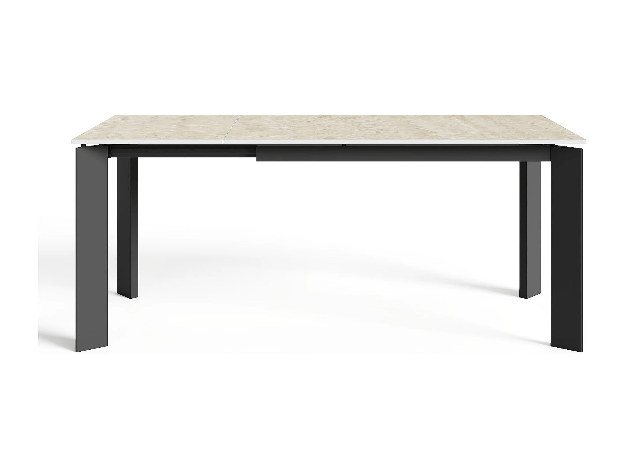 Table extensible 6-8 personnes aspect travertin et pieds noirs 140cm LINEA