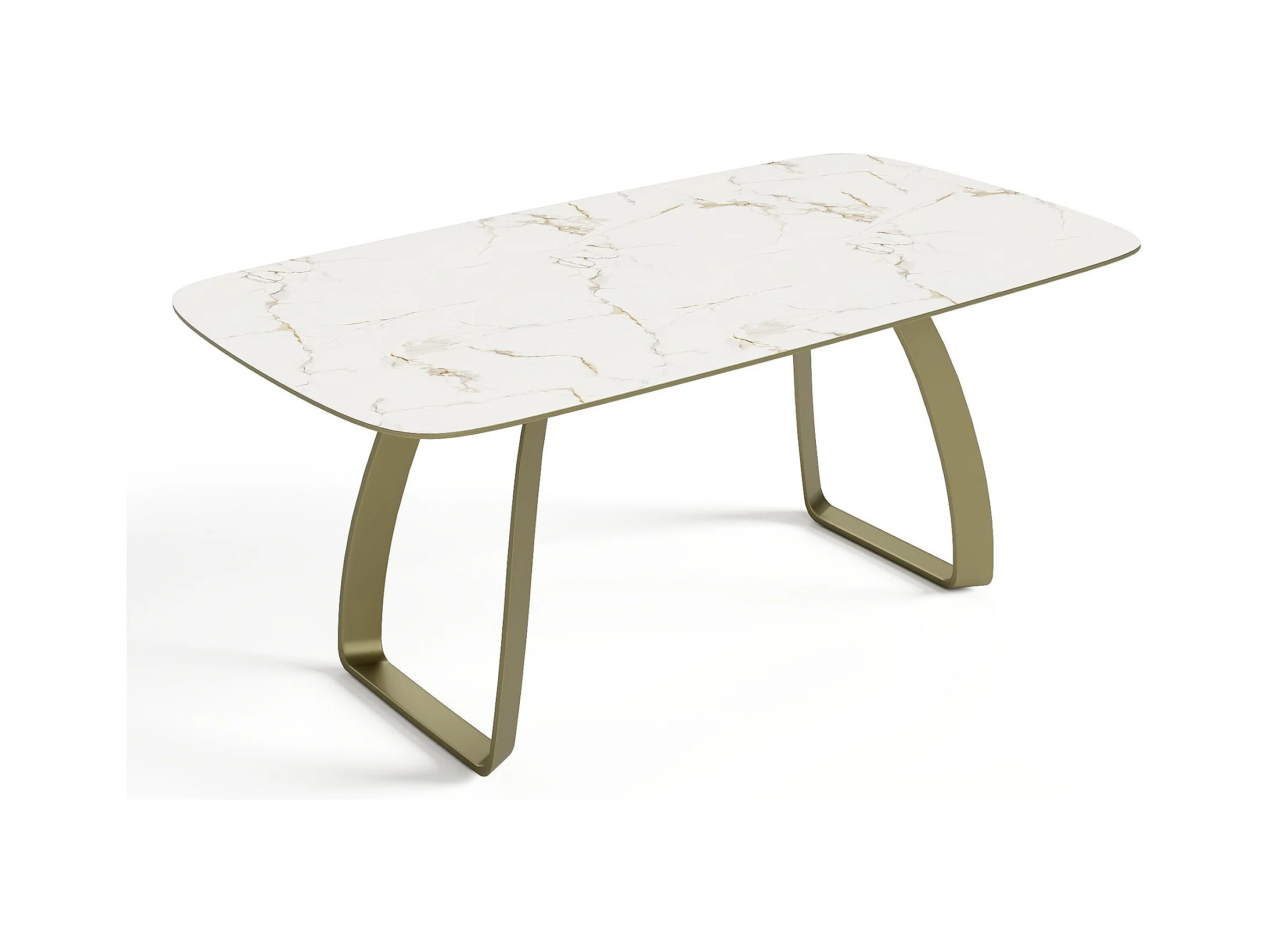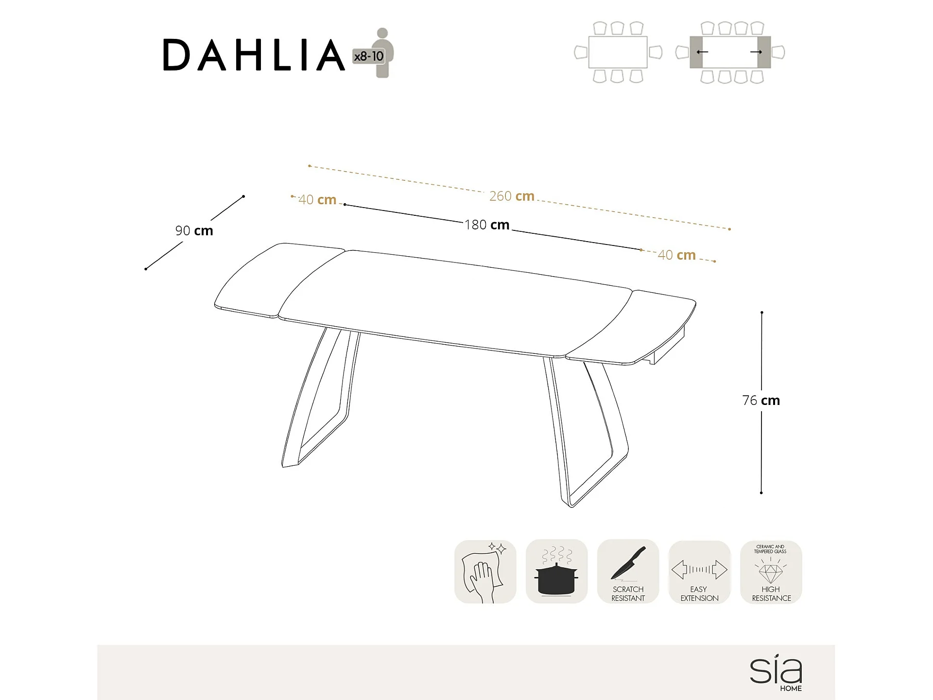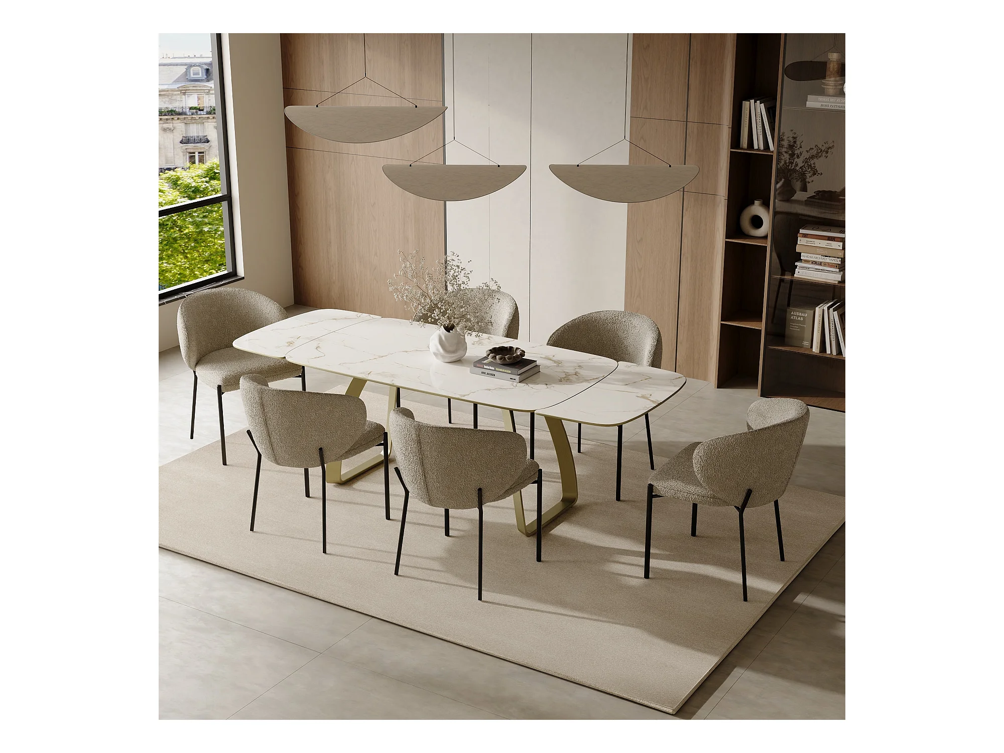 Table extensible 8-10 personnes céramique effet marbre blanc 180cm DAHLIA