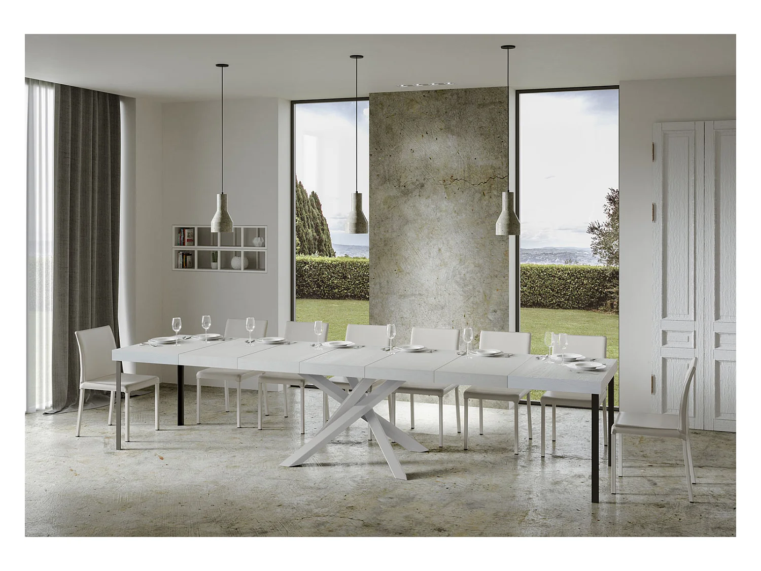 Table extensible 90x120/380 cm Volantis Premium frêne blanc structure blanc