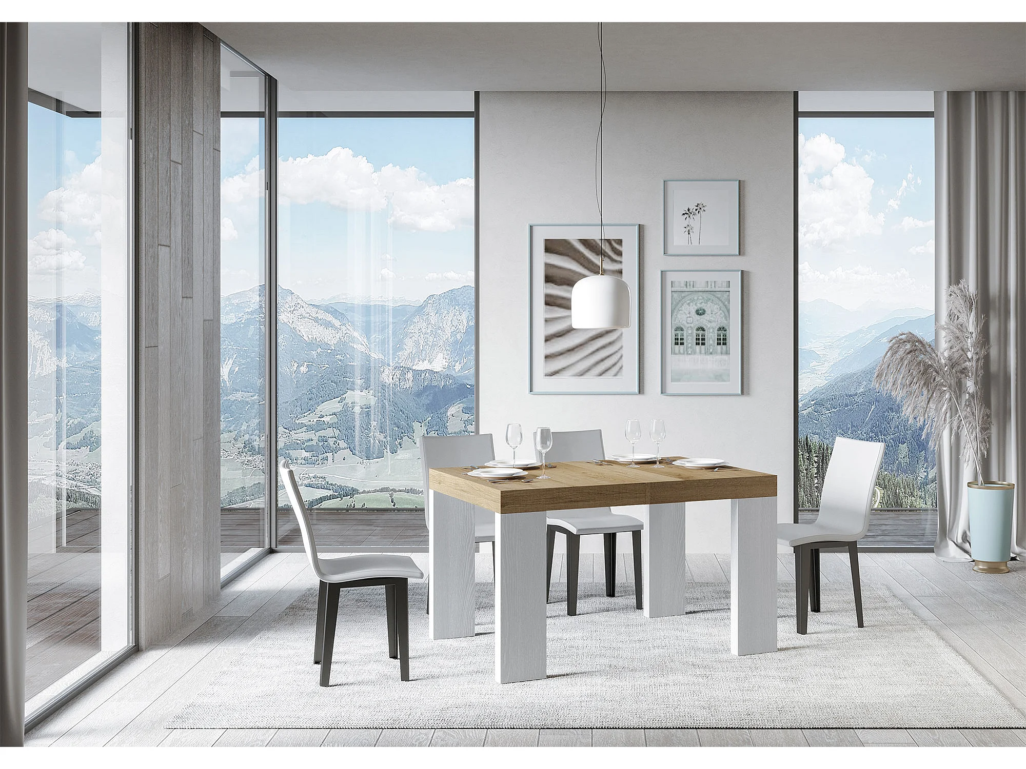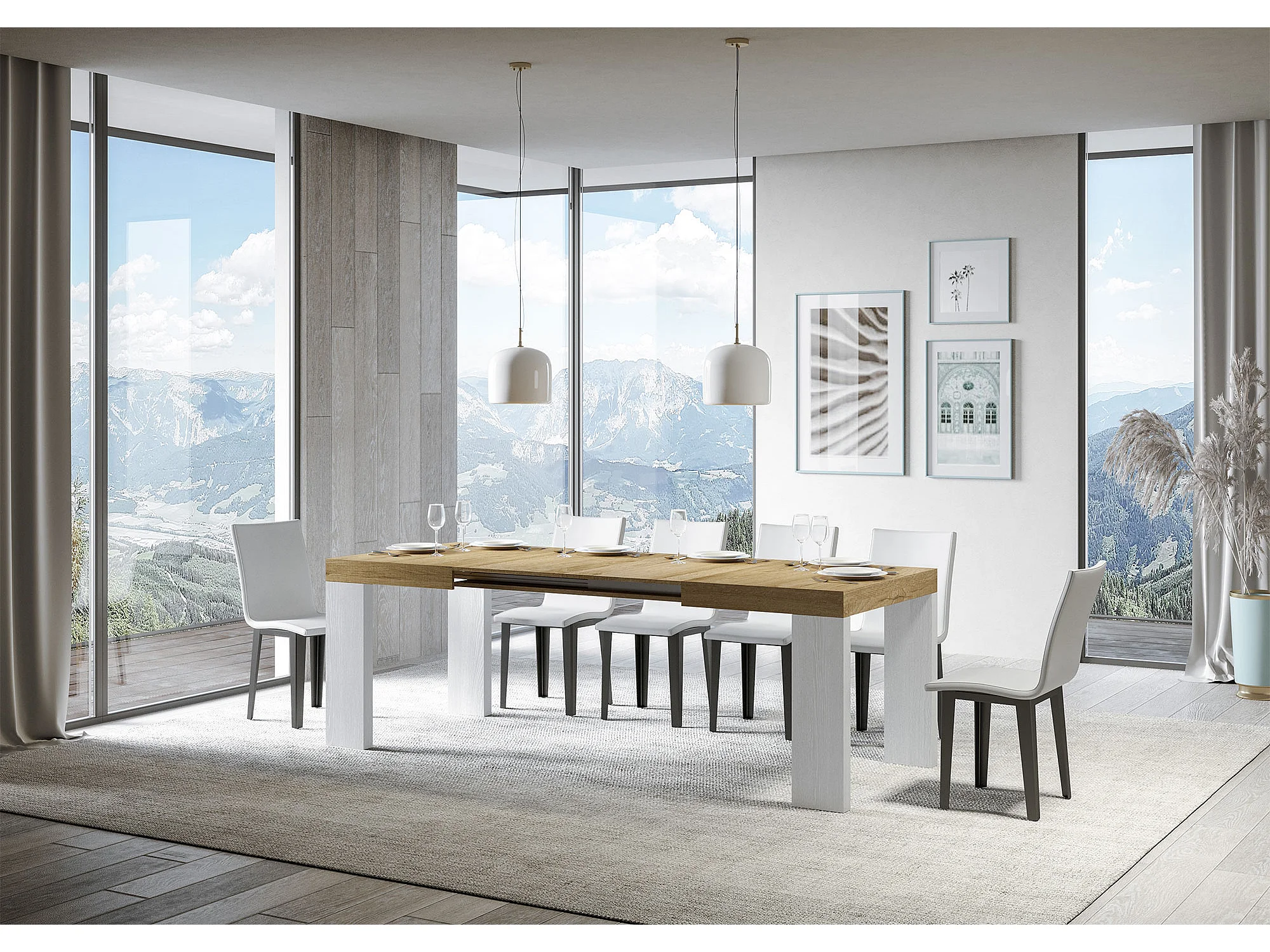 Table extensible 90x130/390 cm Roxell Mix dessus Chêne Nature pieds Frêne Blanc