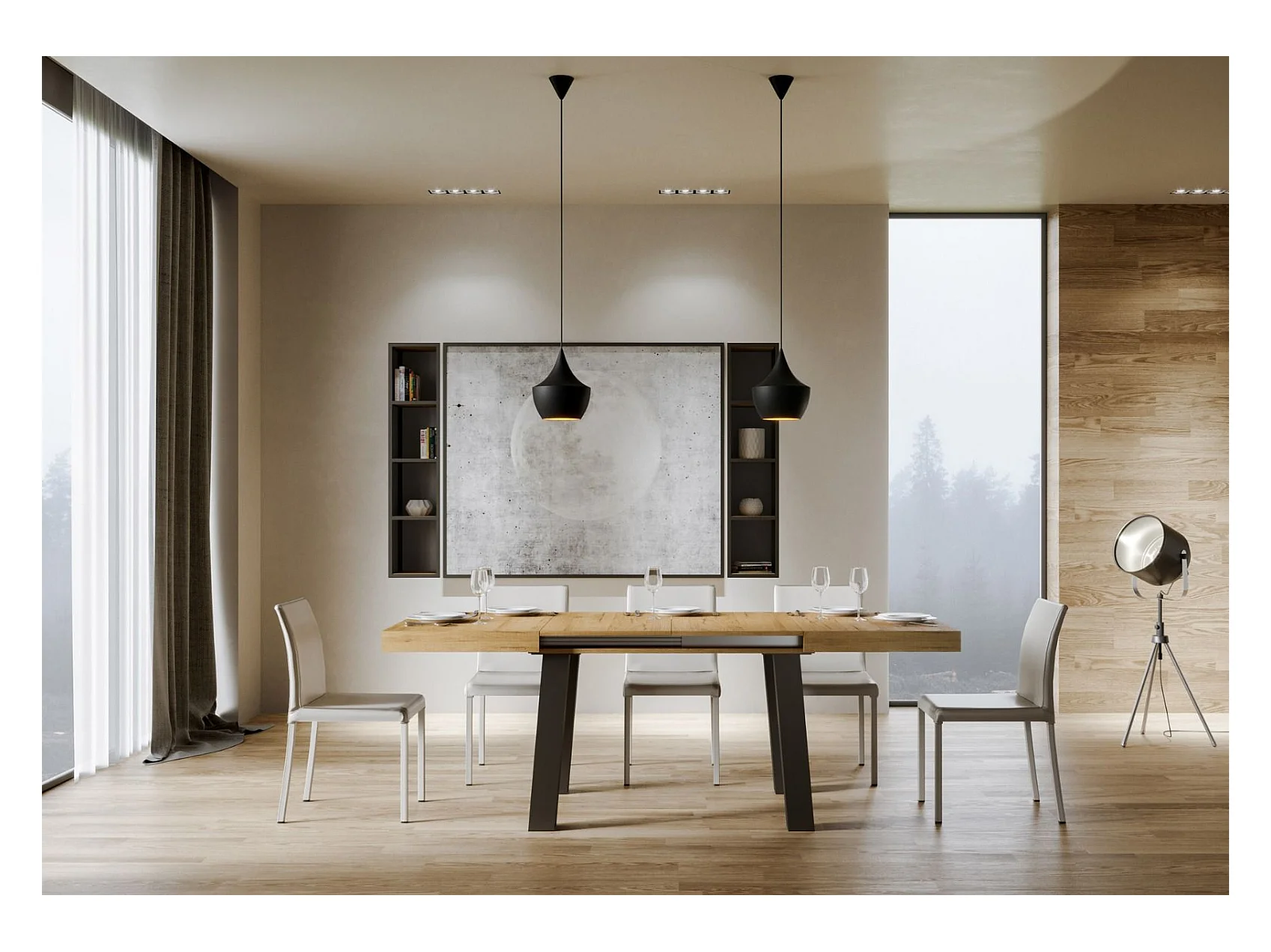 Table extensible 90x140/244 cm Bridge Chêne Nature cadre Anthracite