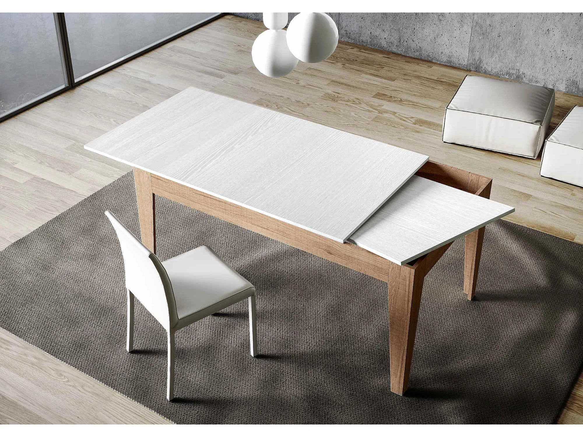 Table extensible 90x160/220 cm Cico Mix dessus Frêne Blanc cadre Chêne Nature