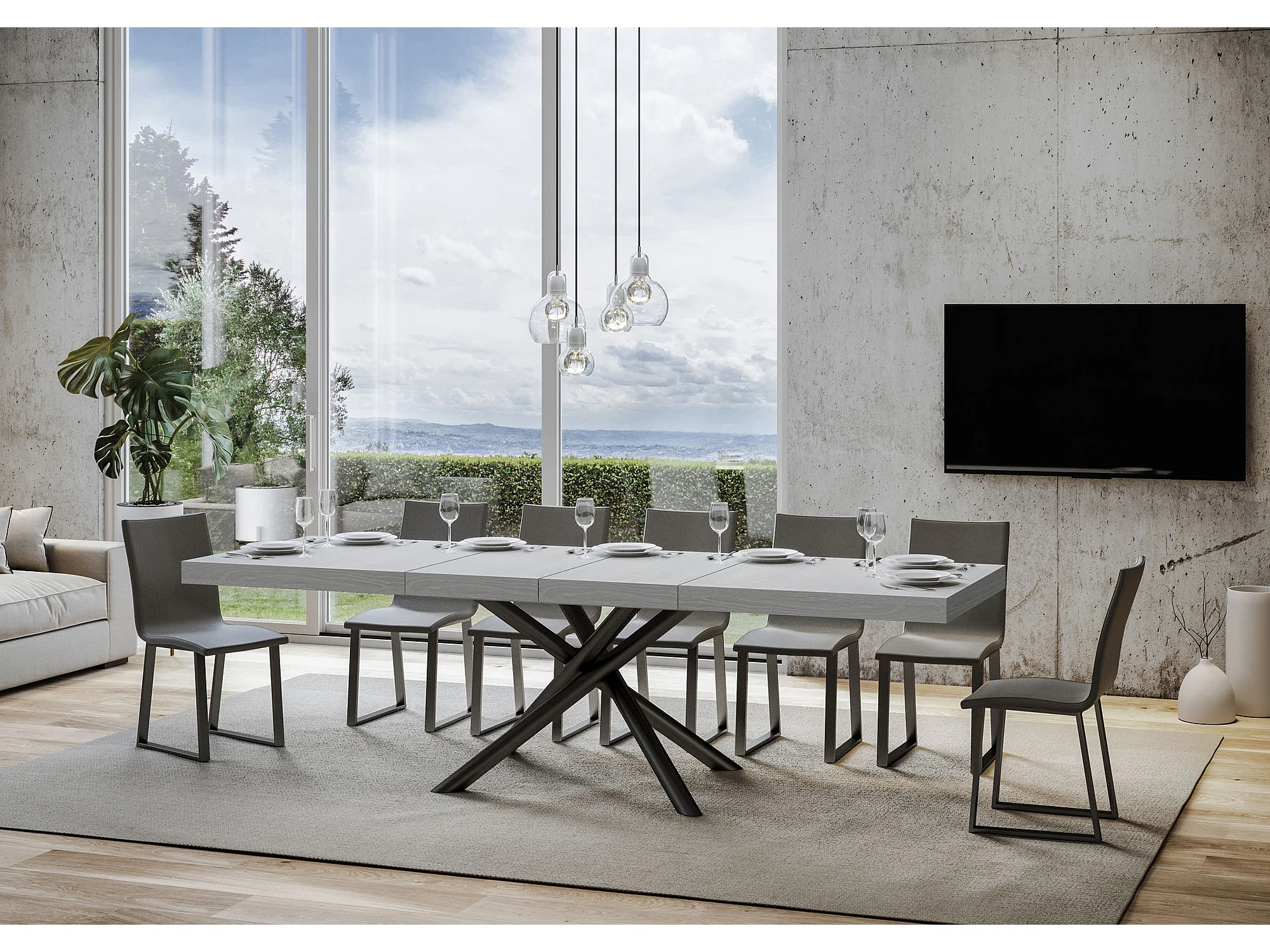 Table extensible 90x180/284 cm Famas Premium Frêne Blanc cadre Anthracite