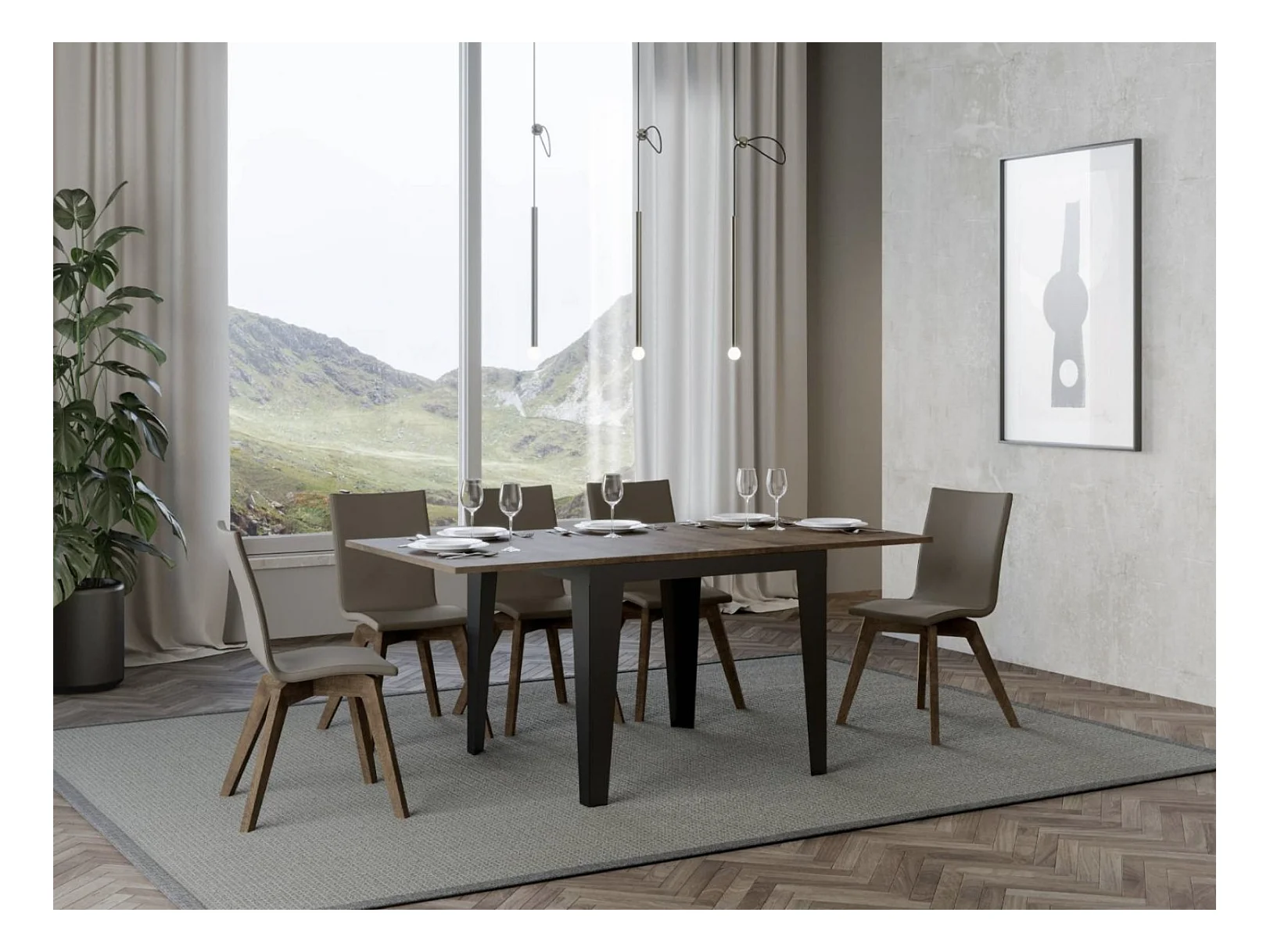 Table extensible carrée 4 à 6 places L 90 à 180cm bois noyer et pieds métal anthracite Librio