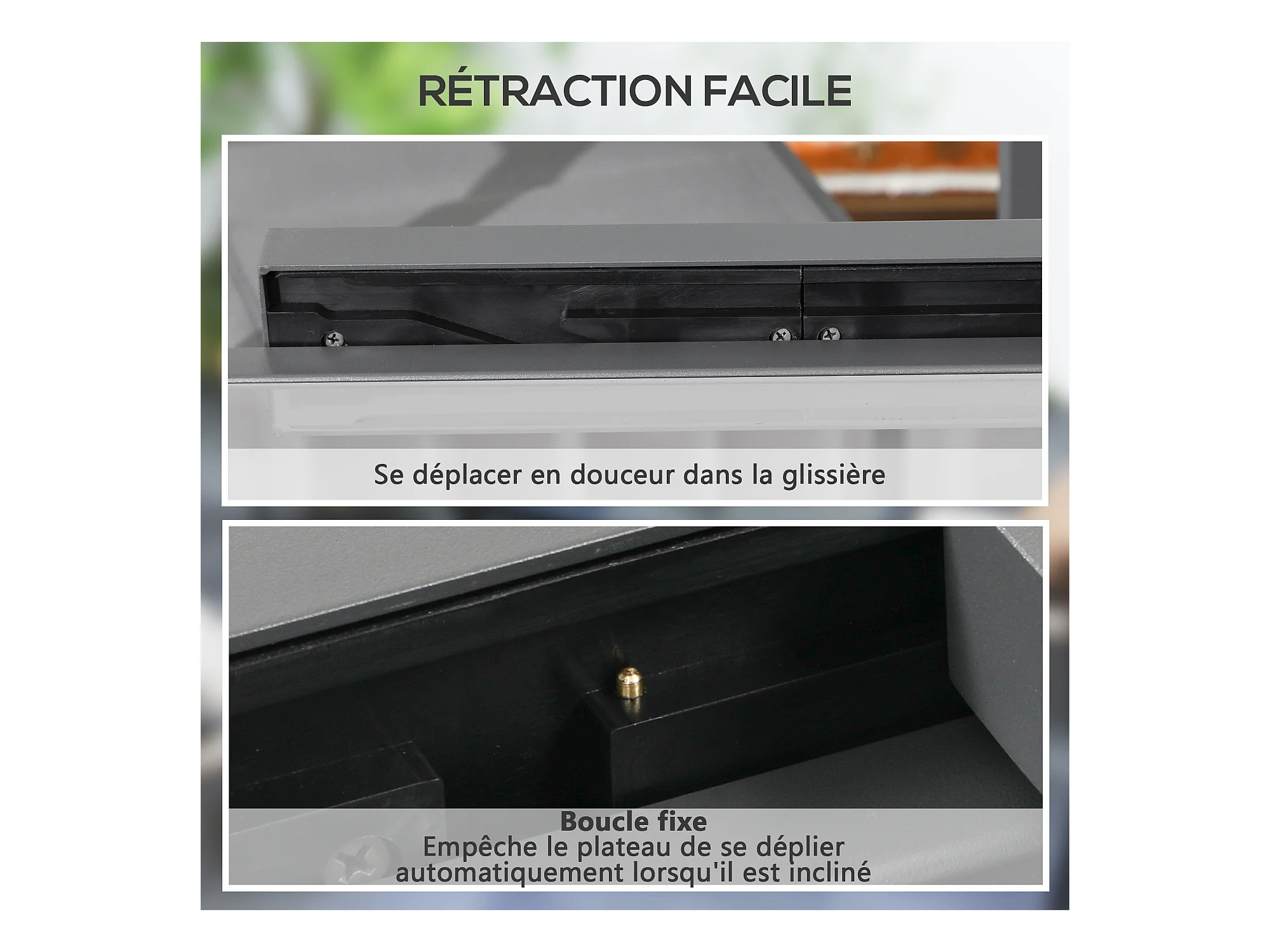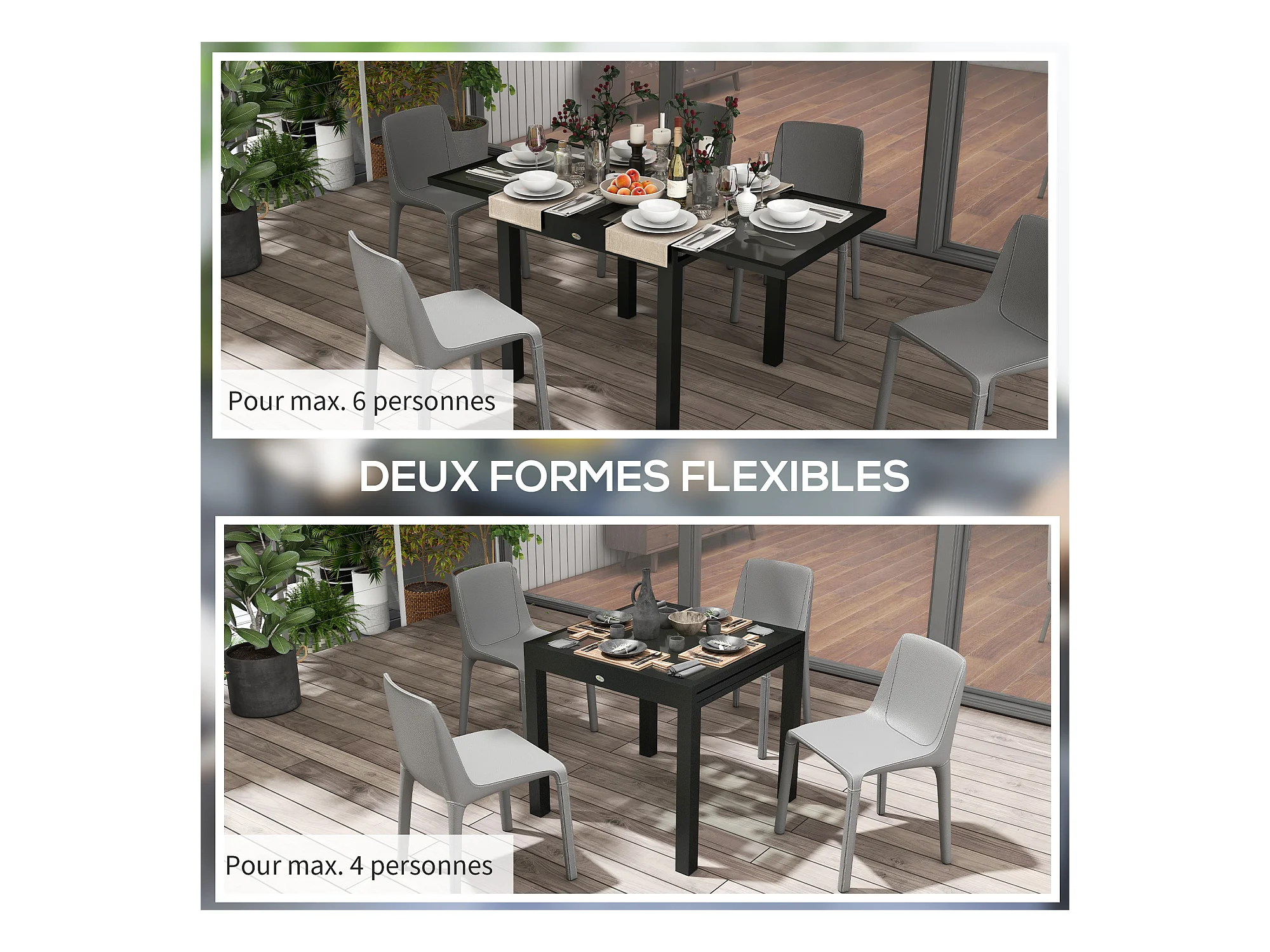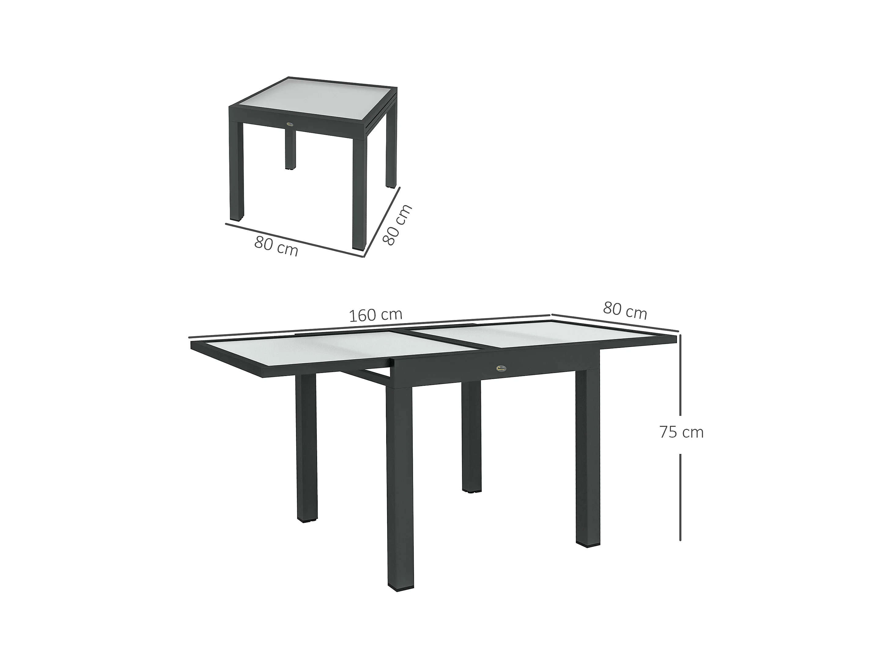 Table extensible de jardin grande taille dim. dépliées 160L x 80l x 75H cm alu métal époxy anthracite plateau verre trempé transparent