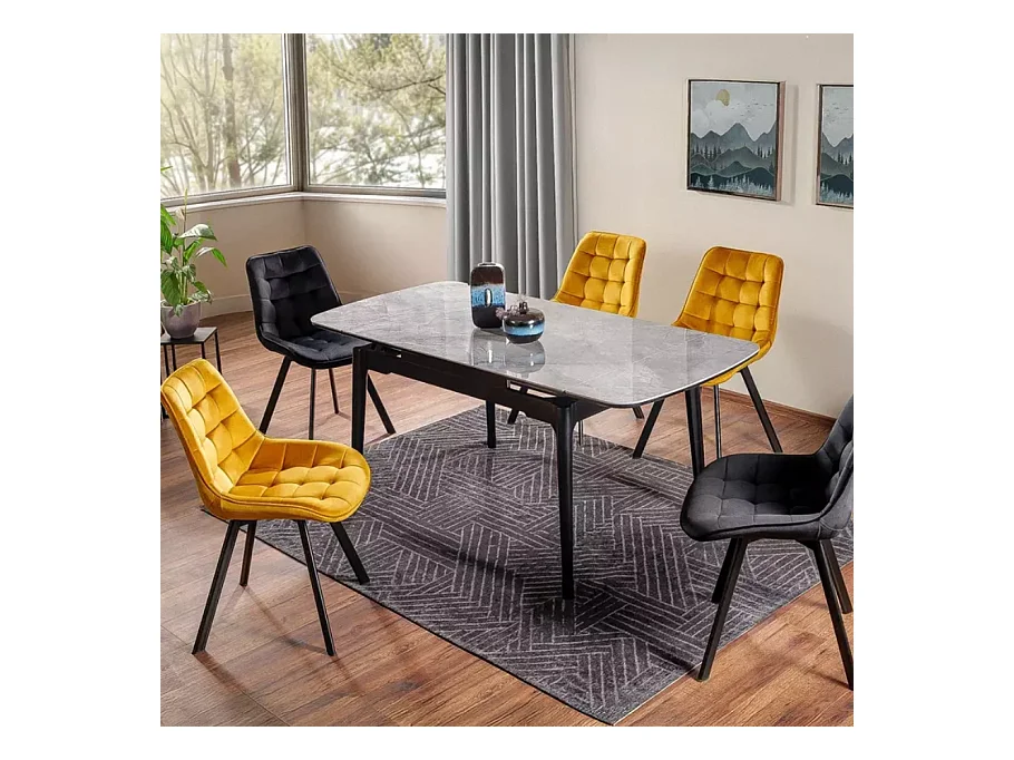 Table extensible de salle à manger gris brillant 120 + 60cm céramique structure bois STAN