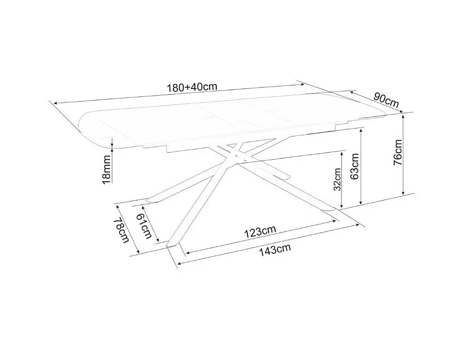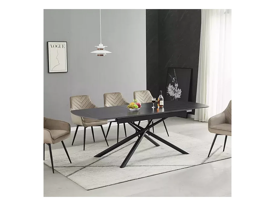 Table extensible de salle à manger noir mat scandinave 180 + 40cm céramique et métal Vila