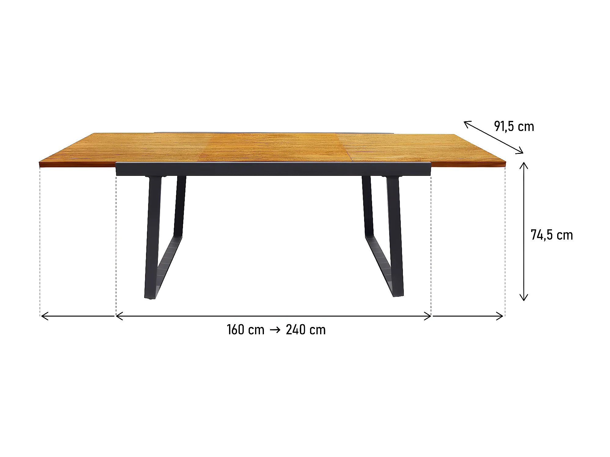 Table extensible en aluminium et bois " Iris" - 160/240 X 91 X 74 cm - Marron