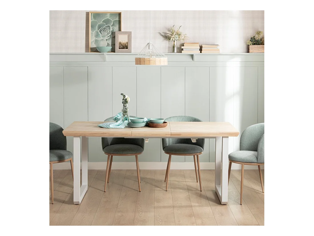 Table extensible en bois naturel 140x76 cm-Khonor