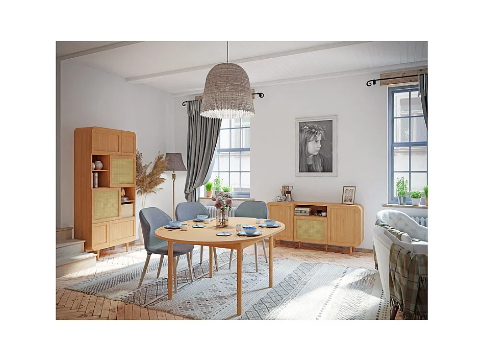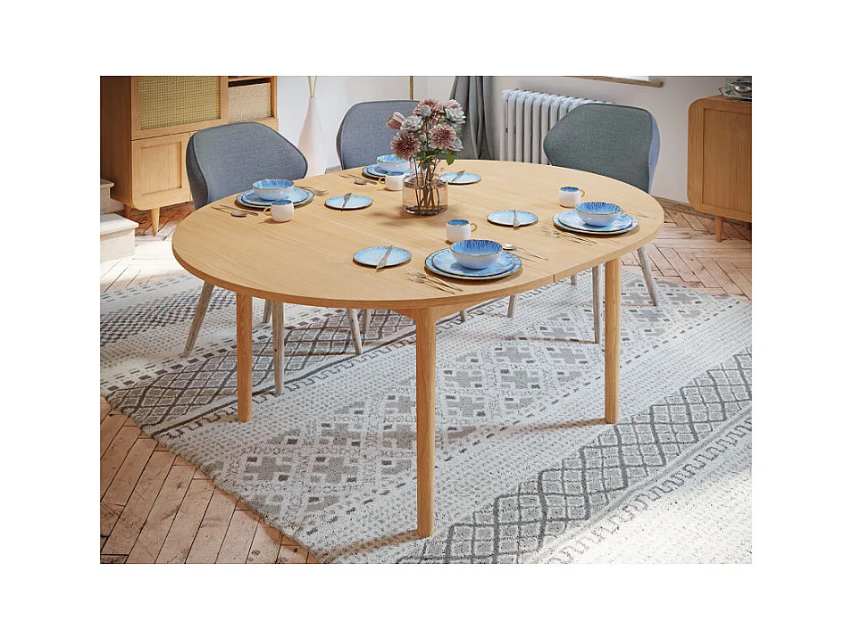 Table extensible L. 130/165 cm décor chêne pieds en bois - VIVIAN
