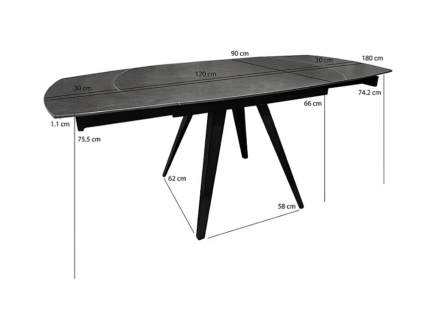 Table extensible ovale 120/180 cm céramique gris anthracite - ADELPHIA