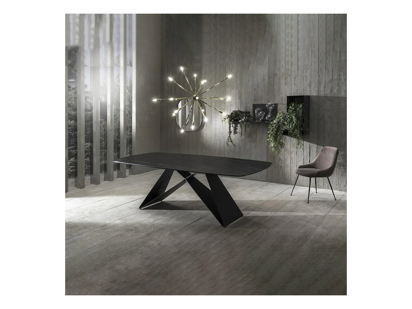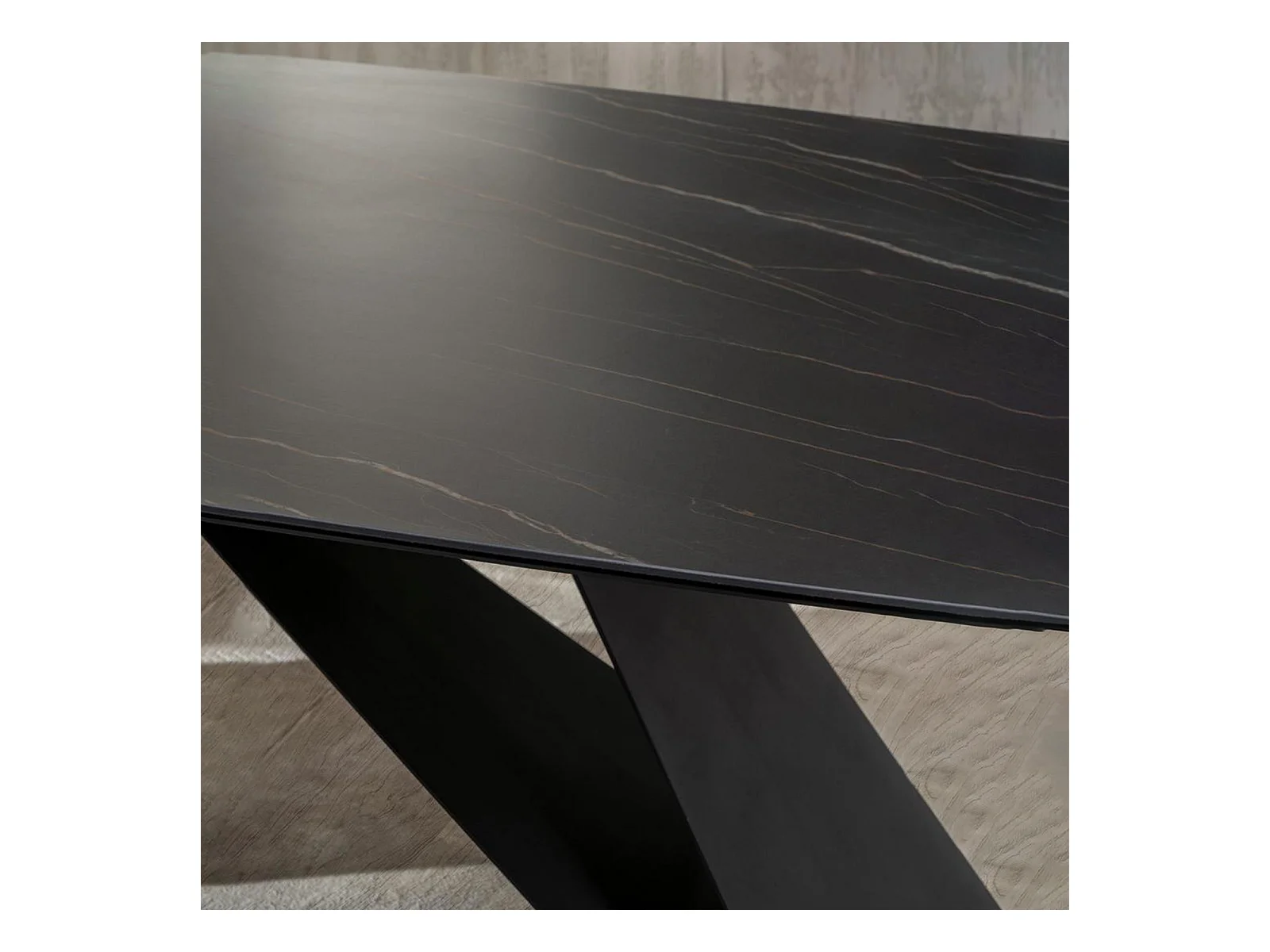 Table fixe moderne "Loyra" en céramique sur verre trempé effet marbre cm 220x110 76h