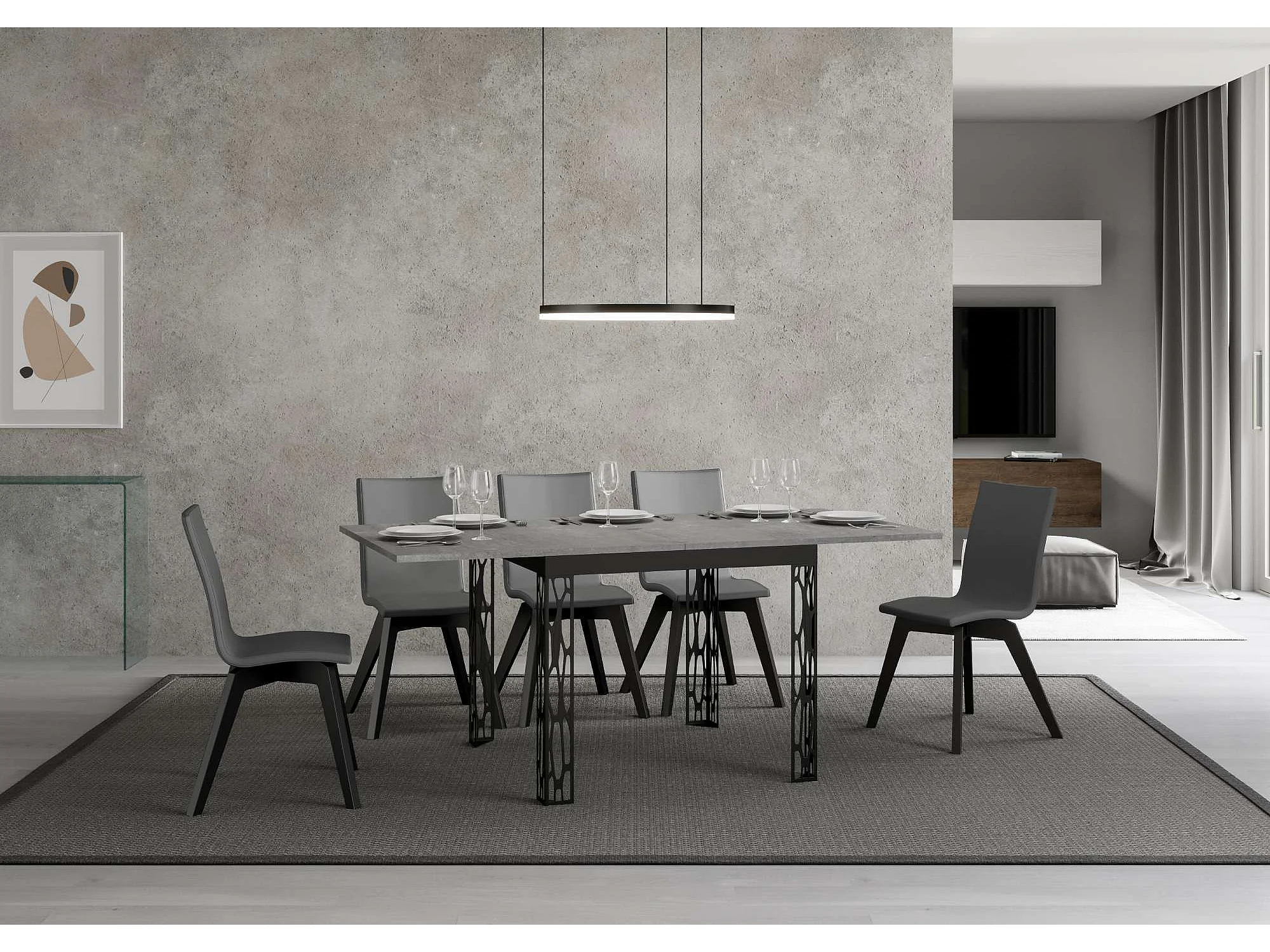 Table extensible portefeuille 90x90/180 cm Ghibli Libra Gris Béton cadre Anthracite