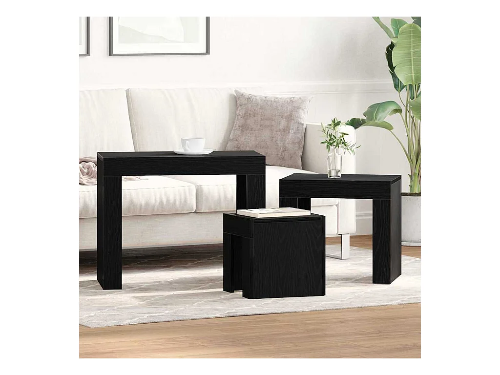 Tables basses gigognes 3 pièces noir bois d'ingénierie